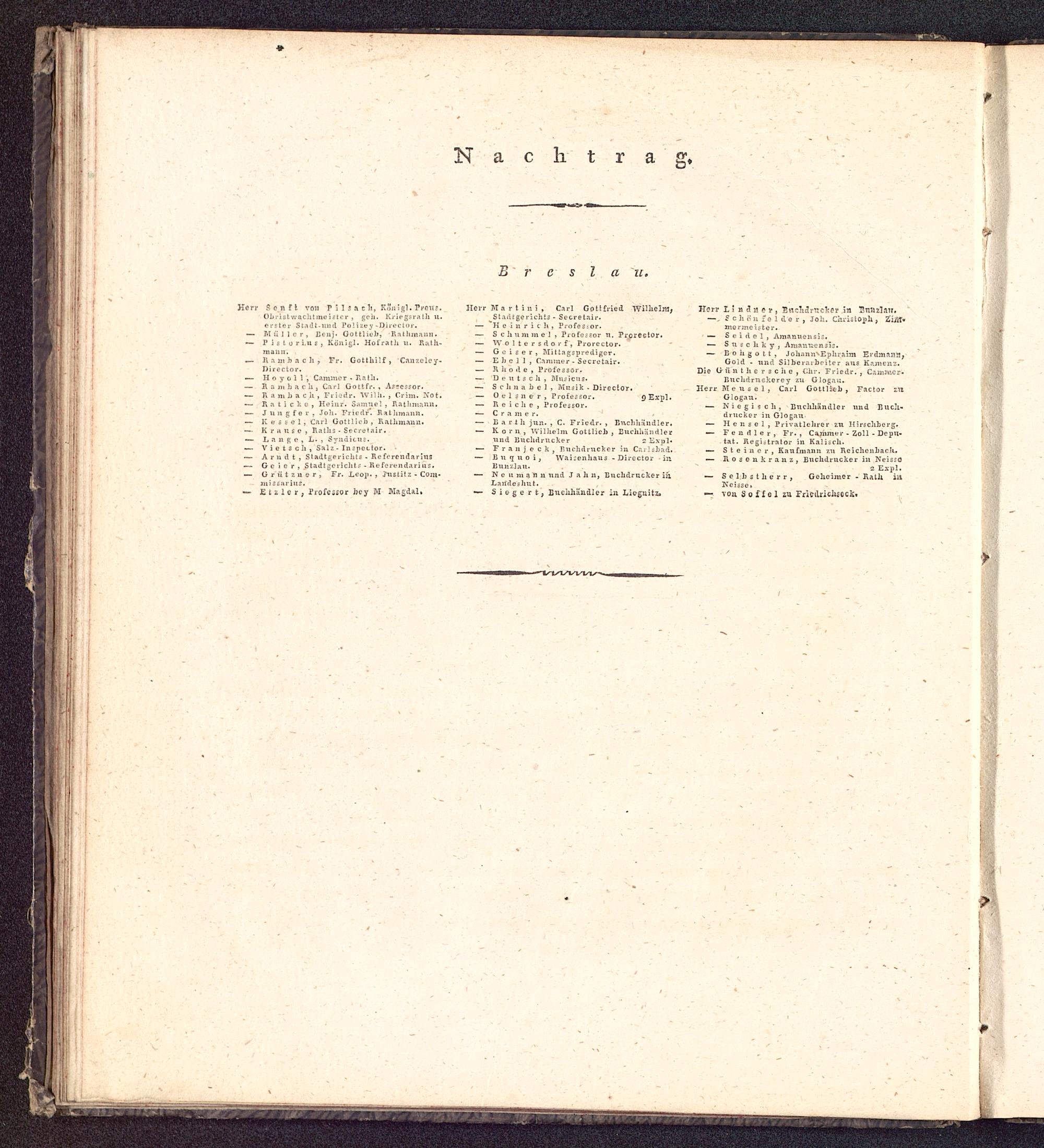 Buchdruckerey zu Glogau.Herr M e u s e 1 ! Carl Gottlit-b t Factor zu