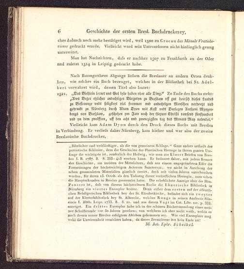 Man hat Nachrichten, dass er nachher 1507 zu Frankfurt !! an der Odernnd zuletzt 1514 in Leipzig gedruckt habe.