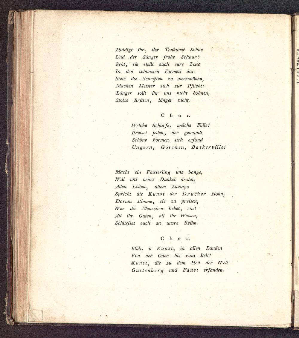 Welche Schärfe, welche Fülle{Preiset jeden, der gewandtSchöne Formen sich erfandUngern, Göschen, B a sker ville!
