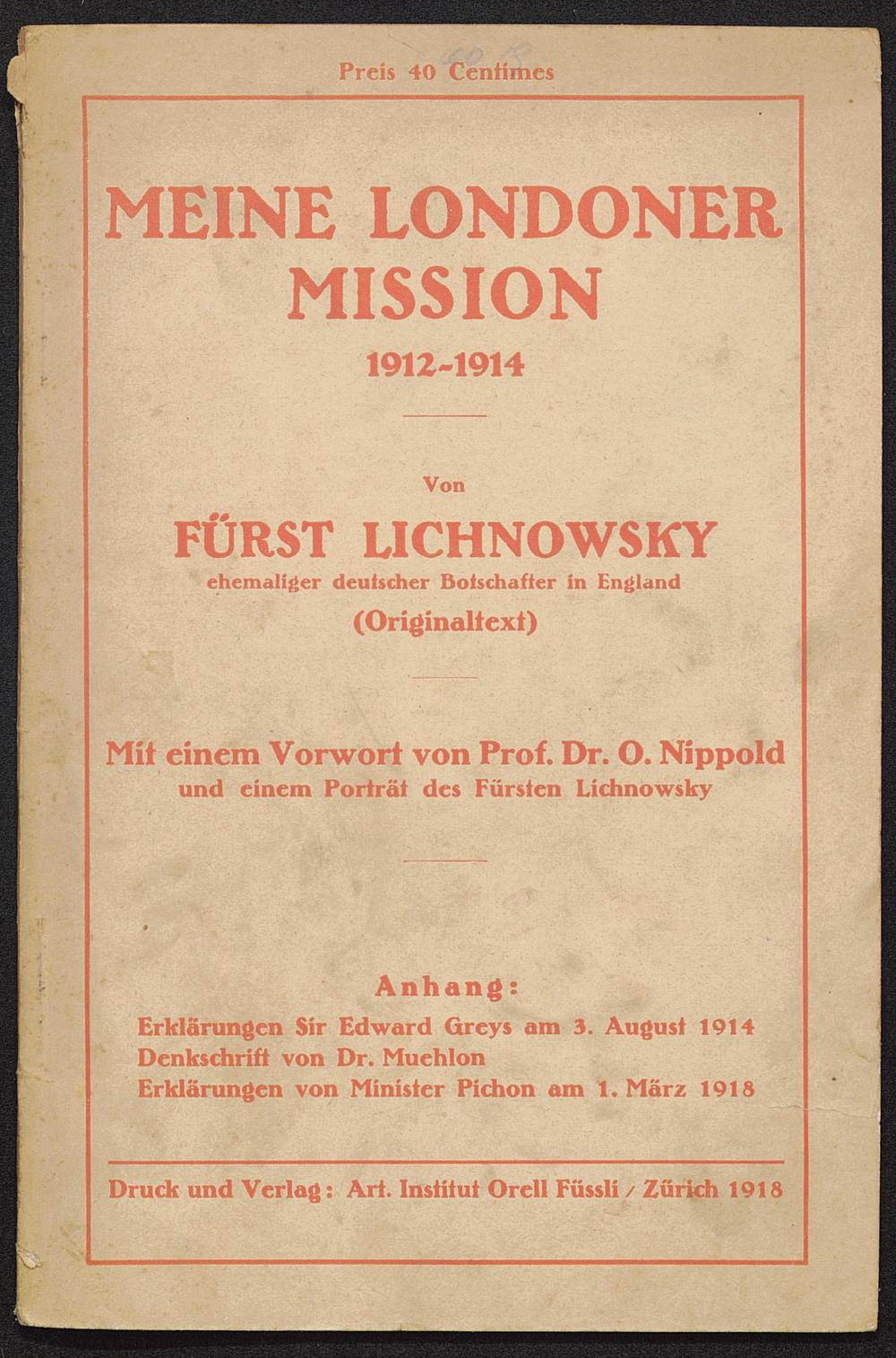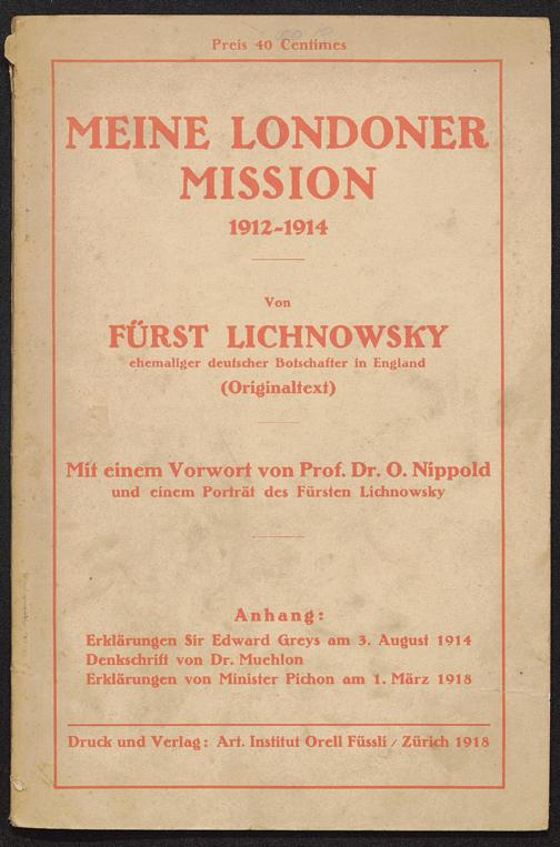 Erklärungen Sir Edward Greys am 3. August 1914Denkschrift von Dr. Muehlon