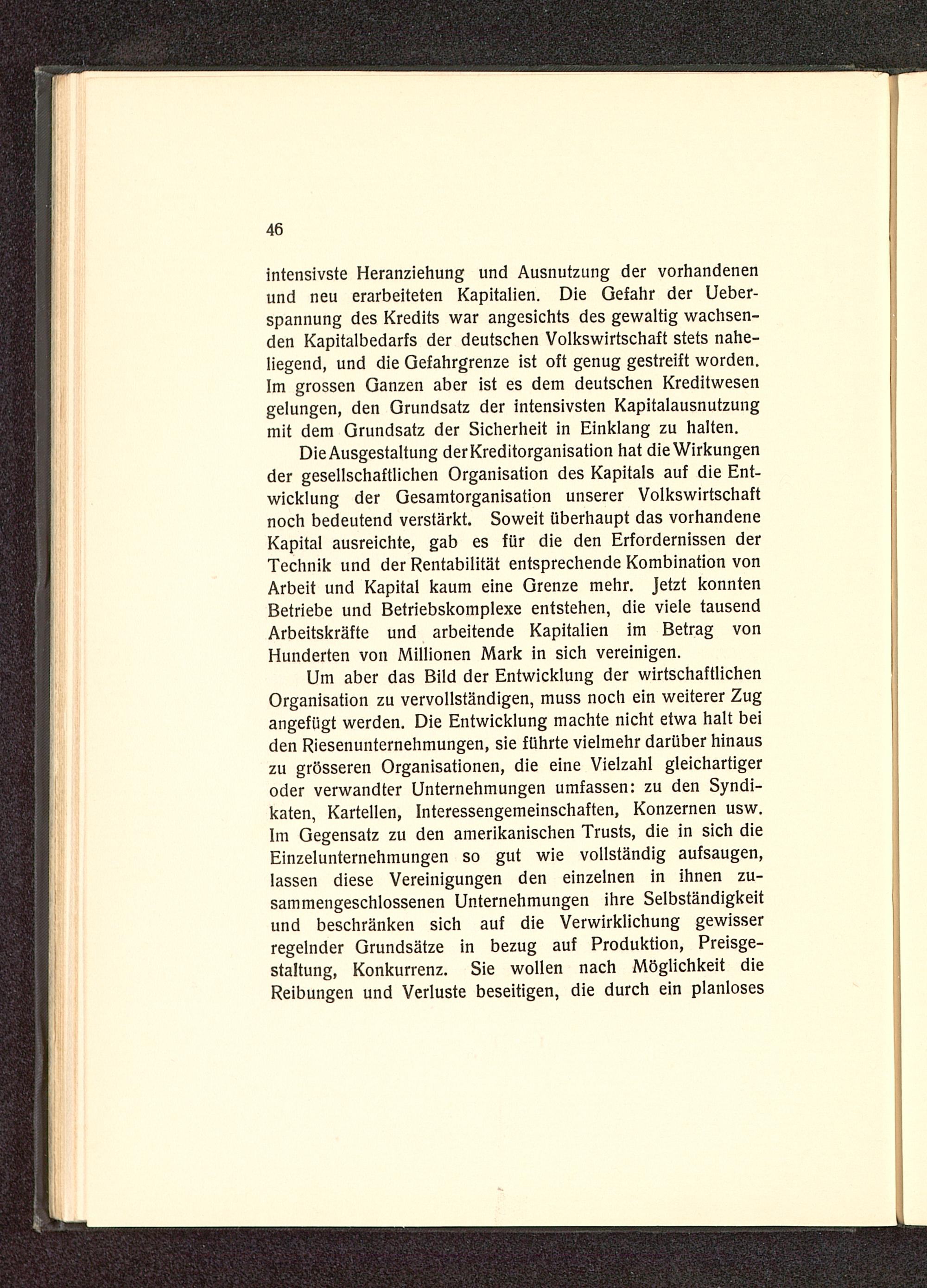 Die Ausgestaltung der Kreditorganisation hat die Wirkungender gesellschaftlichen Organisation des Kapitals auf die Ent-wicklung der Gesamtorganisation unserer Volkswirtschaftnoch bedeutend verstärkt. Soweit überhaupt das vorhandeneKapital ausreichte, gab es für die den Erfordernissen derTechnik und der Rentabilität entsprechende Kombination vonArbeit und Kapital kaum eine Grenze mehr. Jetzt konntenBetriebe und Betriebskomplexe entstehen, die viele tausendArbeitskräfte und arbeitende Kapitalien im Betrag vonHunderten von Millionen Mark in sich vereinigen.