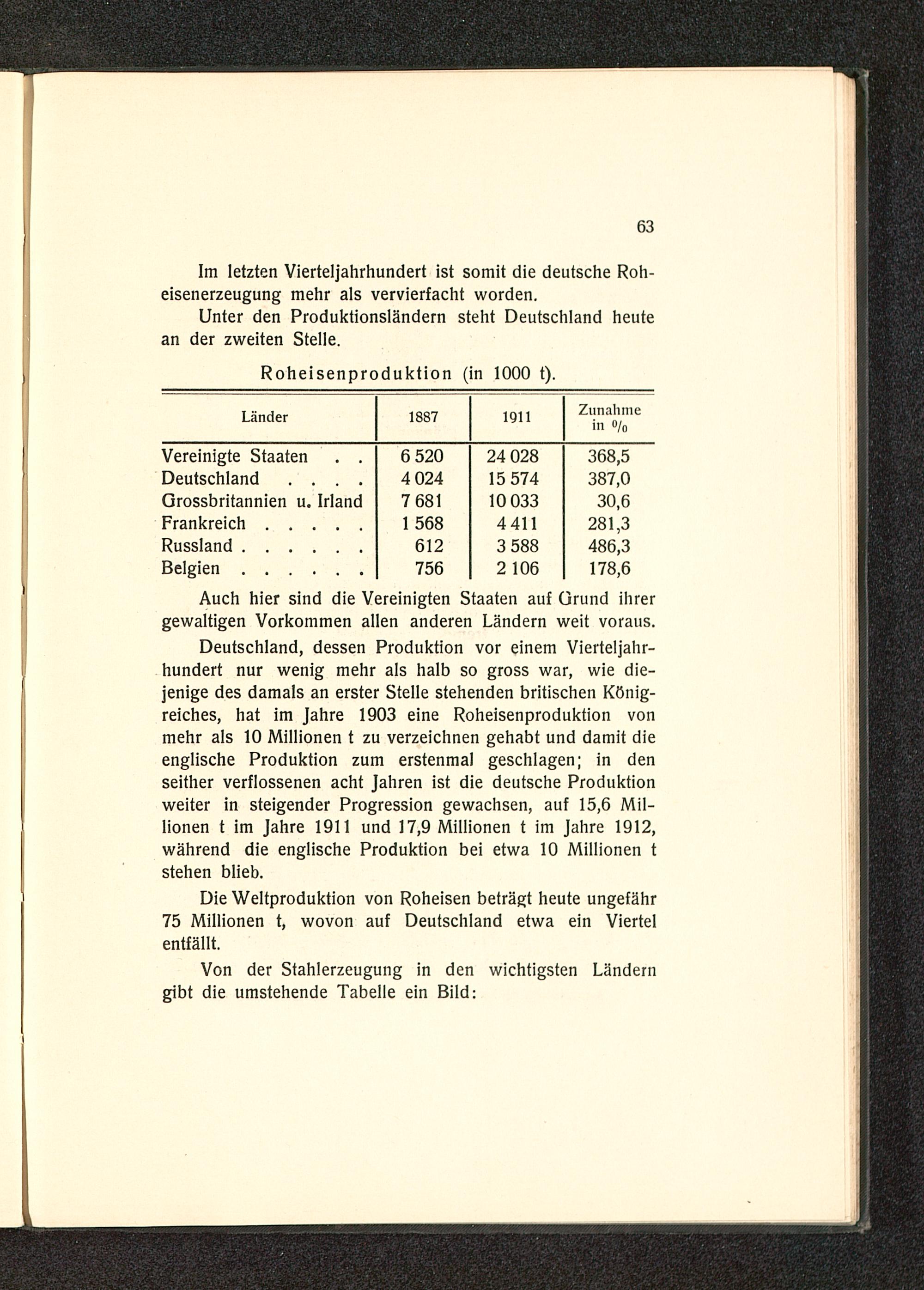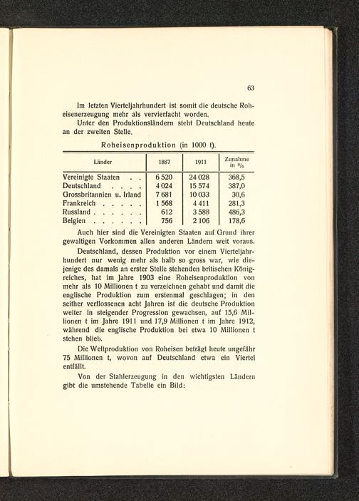 Im letzten Vierteljahrhundert ist somit die deutsche Roh-eisenerzeugung mehr als vervierfacht worden.