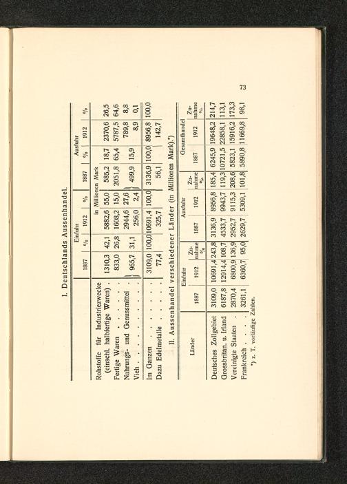 II. Aussenhandel verschiedener Länder (in Millionen Mark).*)Einfuhr