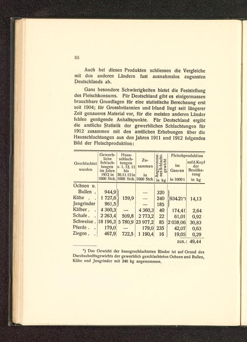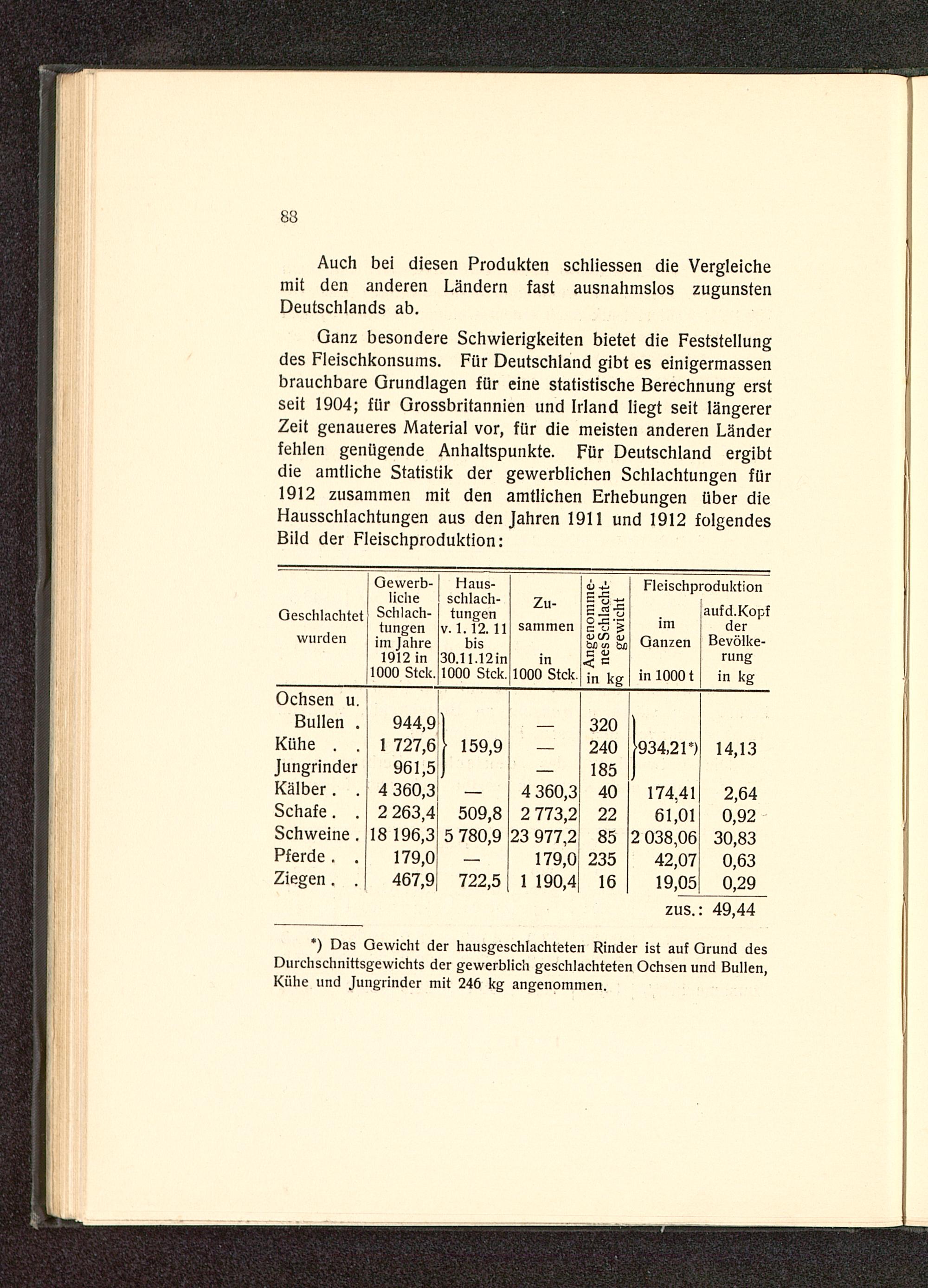 *) Das Gewicht der hausgeschlachteten Rinder ist auf Grund desDurchschnittsgewichts der gewerblich geschlachteten Ochsen und Bullen,Kühe und Jungrinder mit 246 kg angenommen.