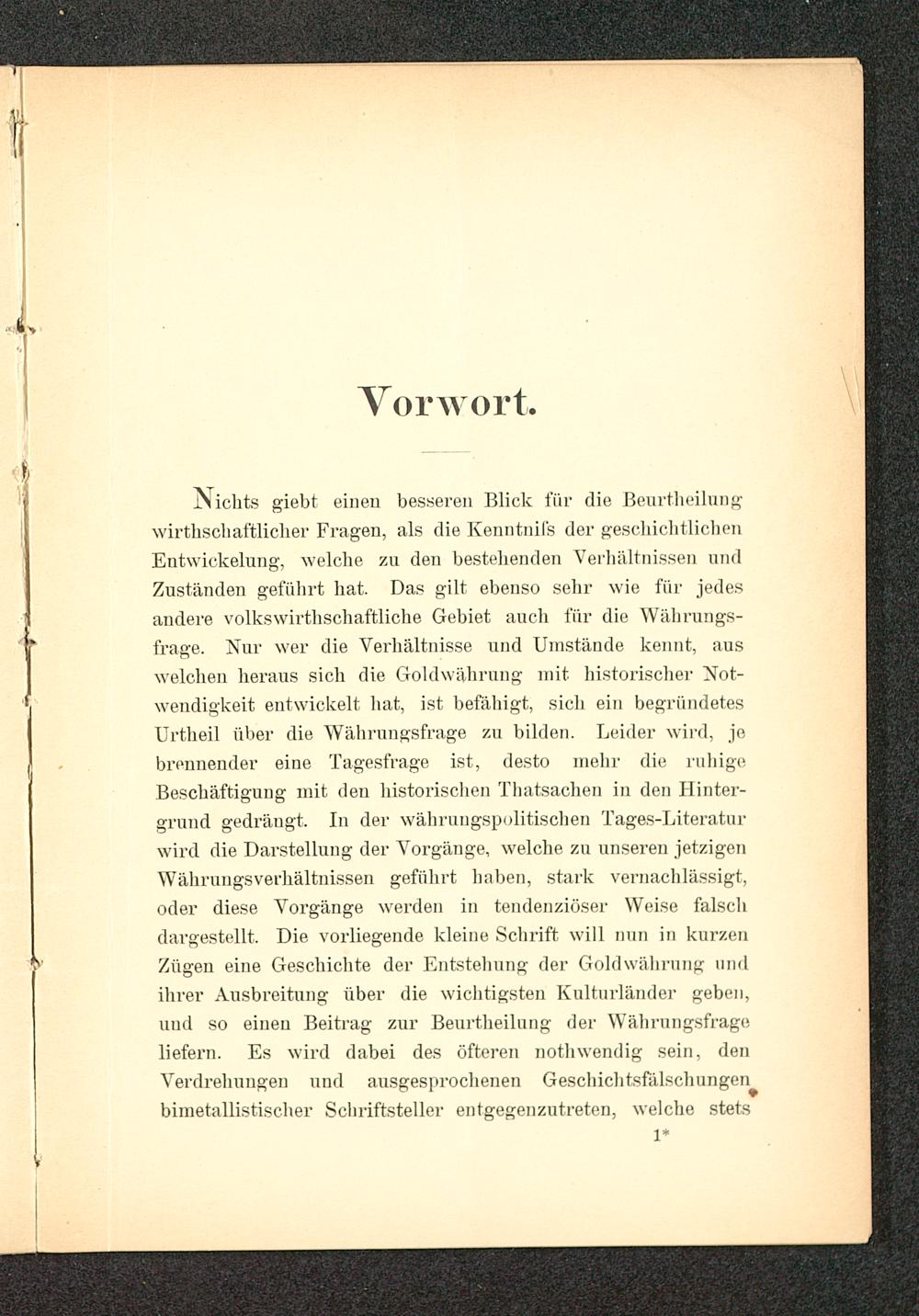 Nichts giebt einen besseren Blick für die Beurtheilungwirtschaftlicher Fragen, als die Kenntnifs der gescliichtlichenEntwickelung, welche zu den bestehenden Verhältnissen undZuständen geführt hat. Das gilt ebenso sehr wie für jedesandere volkswirtschaftliche Gebiet ancb für die Währungs-frage. Nur wer die Verhältnisse und Umstände kennt, auswelchen heraus sich die Goldwährung mit historischer Not-wendigkeit entwickelt hat, ist befähigt, sich ein begründetesUrtheil über die Währungsfrage zu bilden. Leider wird, jebrennender eine Tagesfrage ist, desto mehr die ruhigeBeschäftigung mit den historischen Thatsachen in den Hinter-grund gedrängt. In der währuugspolitischen Tages-Literaturwird die Darstellung der Vorgänge, welche zu unseren jetzigenWährungsverhältnissen geführt haben, stark vernachlässigt,oder diese Vorgänge werden in tendenziöser Weise falschdargestellt. Die vorliegende kleine Schrift will nun in kurzenZügen eine Geschichte der Entstehung der Goldwährung undihrer Ausbreitung über die wichtigsten Kulturländer geben,uud so einen Beitrag zur Beurtheilung der Währungsfrageliefern. Es wird dabei des öfteren notwendig sein, denVerdrehungen und ausgesprochenen Geschichtsfälschungen^bimetallistischer Schriftsteller entgegenzutreten, welche stets