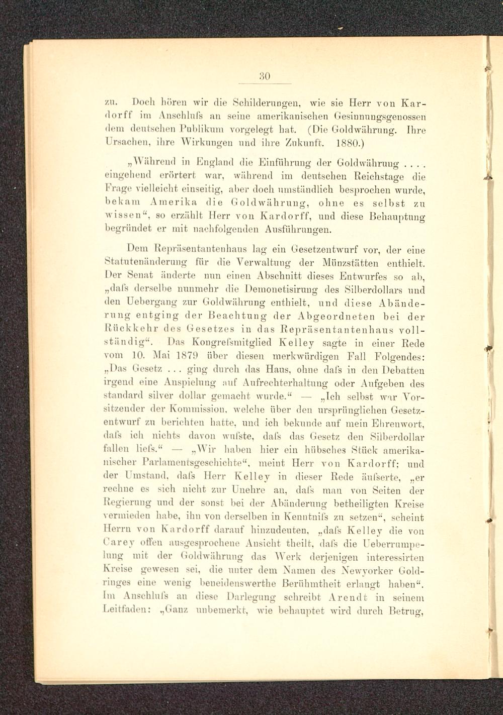 zu. Doch hören wir die Schilderungen, wie sie Herr von Kar-dorff im Anschluß an seine amerikanischen Gesinnungsgenossendem deutschen Publikum vorgelegt hat. (Die Goldwährung. IhreUrsachen, ihre Wirkungen uud ihre Zukunft. 1880.)