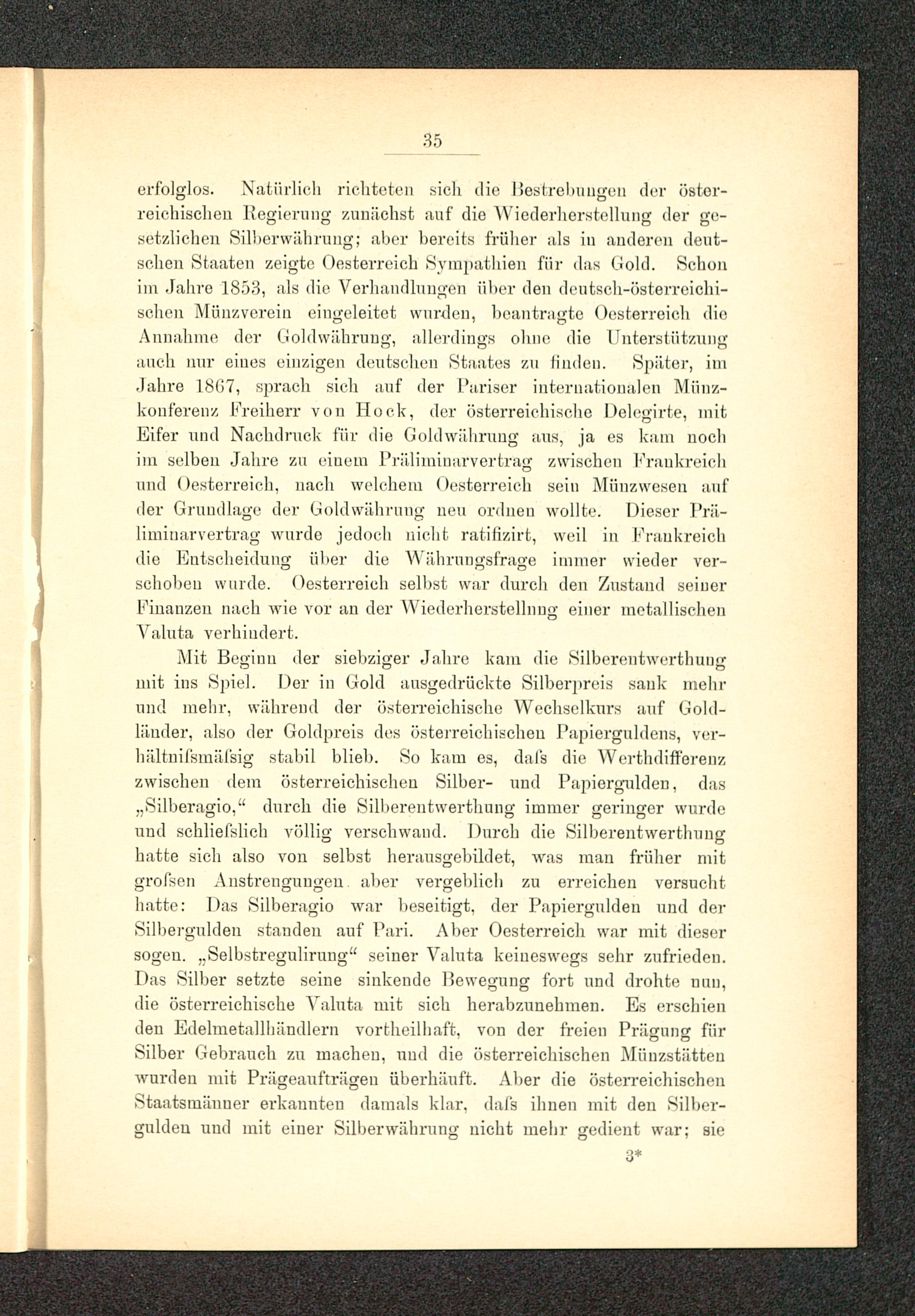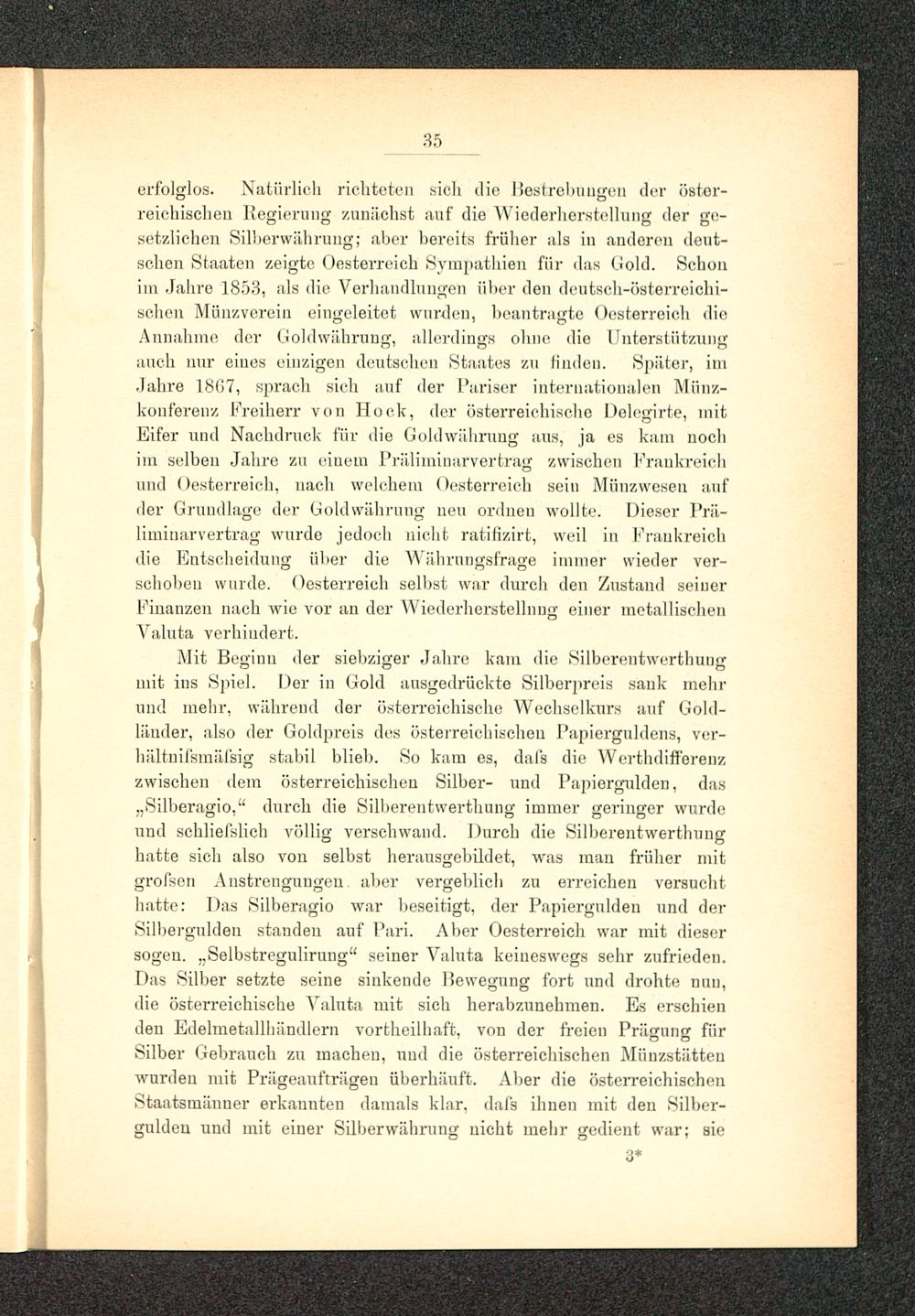 mit ins Spiel. Der in Gold ausgedrückte Silberpreis sank mehrund mehr, während der österreichische Wechselkurs auf Gold-länder, also der Goldpreis des österreichischen Papierguldens, ver-hältnifsmäfsig stabil blieb. So kam es, dafs die Werthdifferenzzwischen dem österreichischen Silber- und Papiergulden, das..Silberagio." durch die Silherentwerthung immer geringer wurde