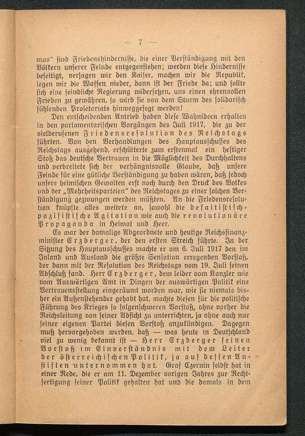 IV. Juliresolution, U-Bootkrieg und Herr Erzberger. (Erzberger in der "Deutschen Allgemeinen Zeitung" vom 4. Juli.)