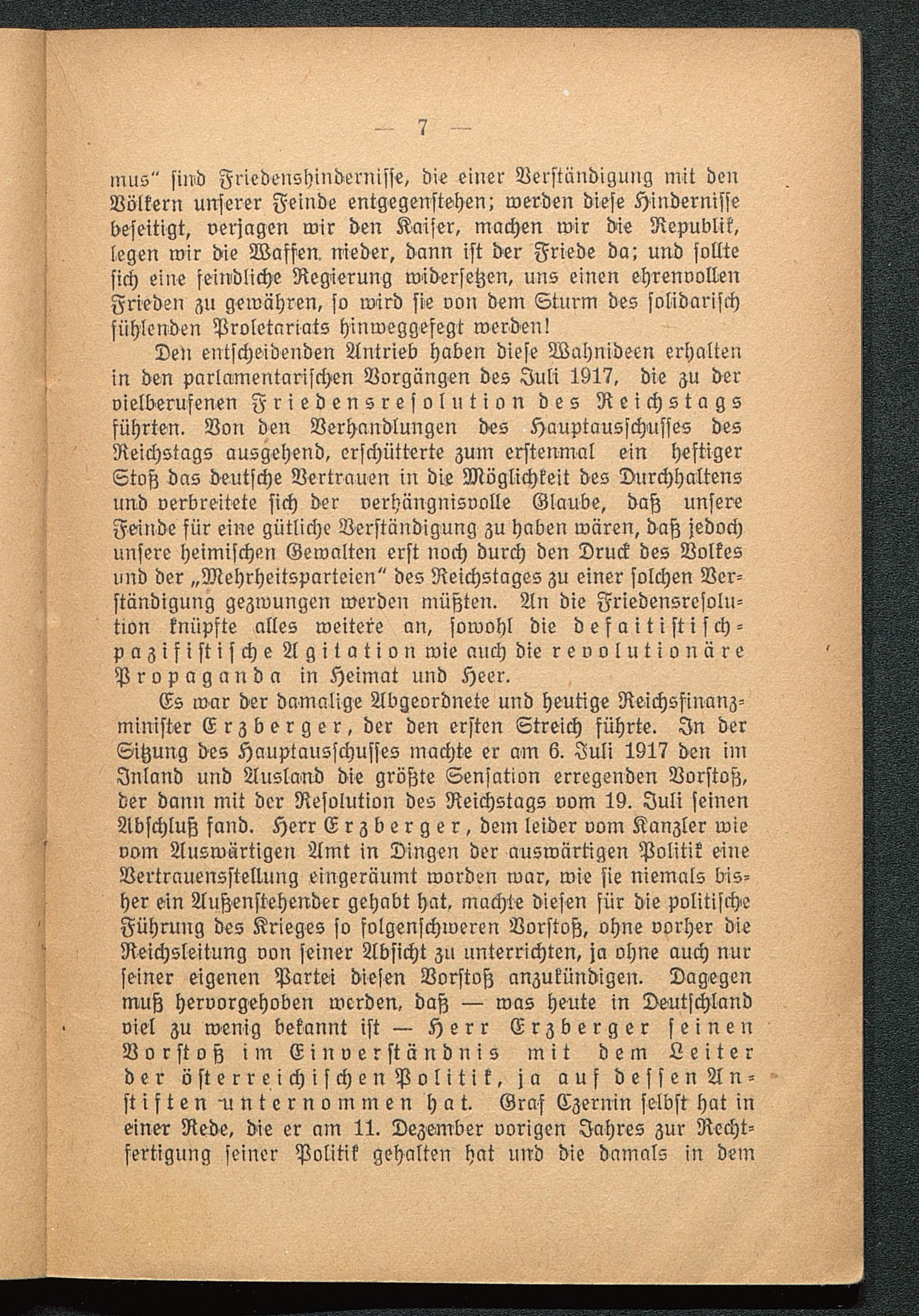 VII. Ein echter "Erzberger". (Helfferich in der "Kreuz-Zeitung" vom 7. Juli.)
