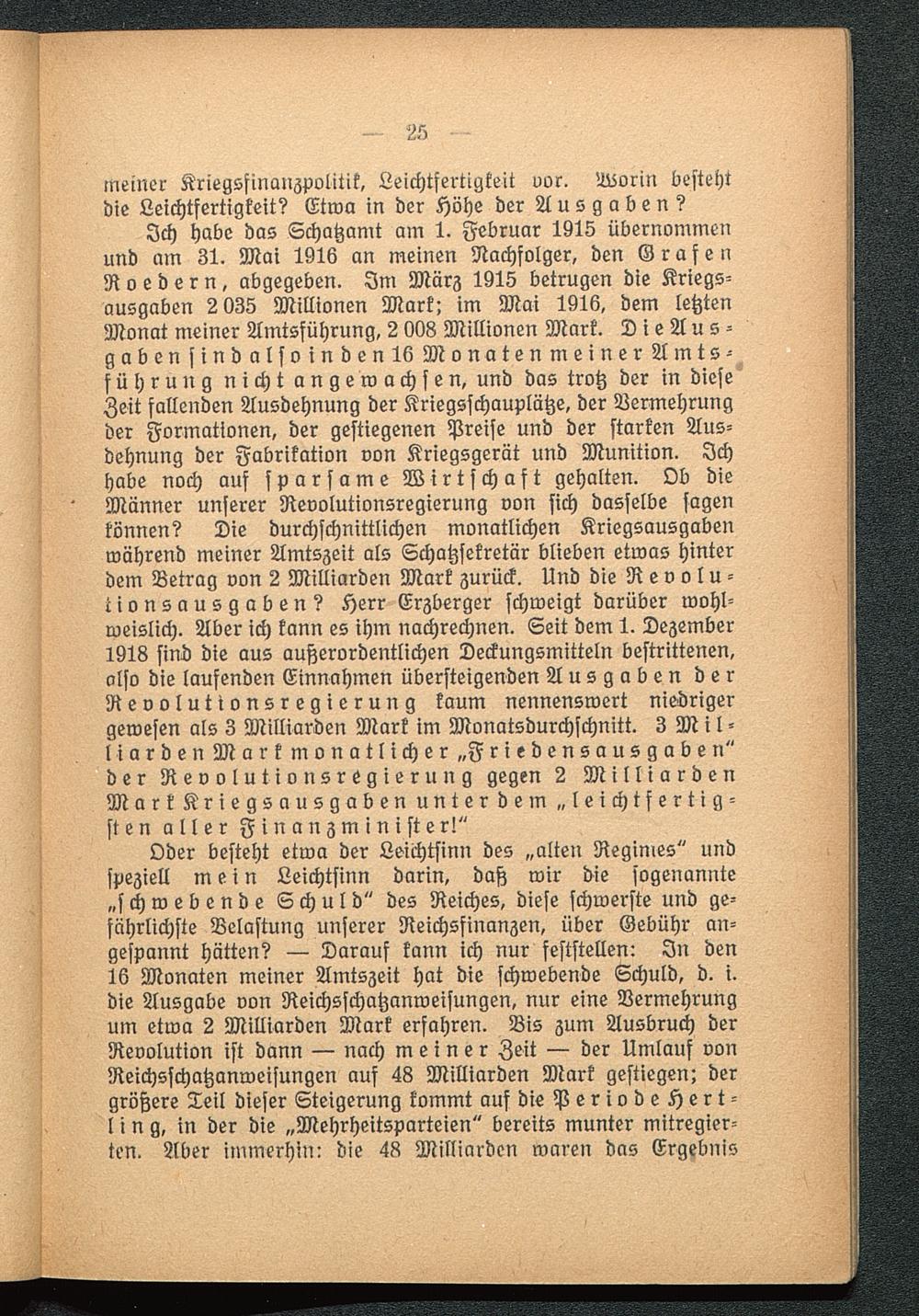 XV. Aus der Rede Erzbergers in der Nationalversammlung am 25. Juli.