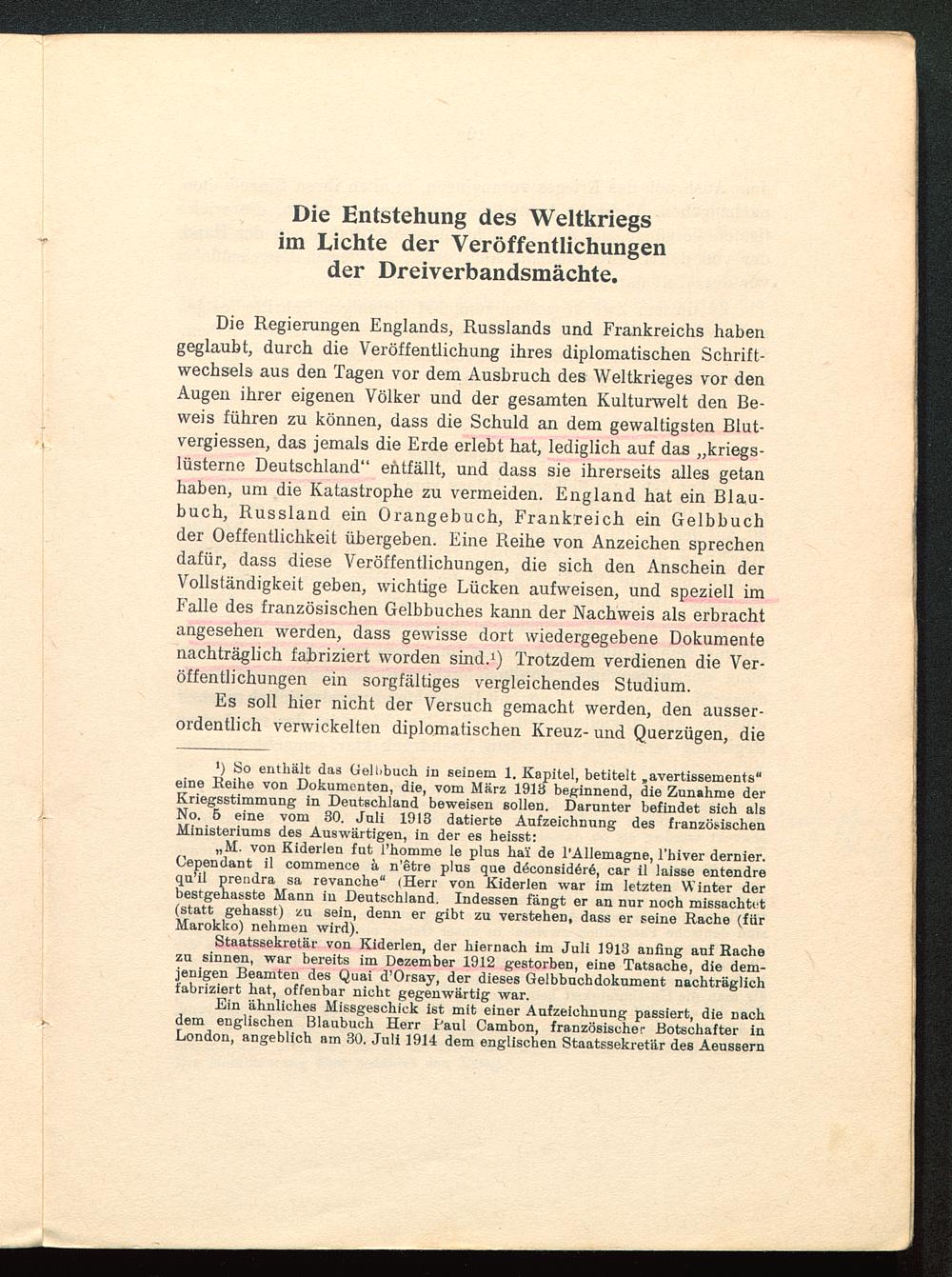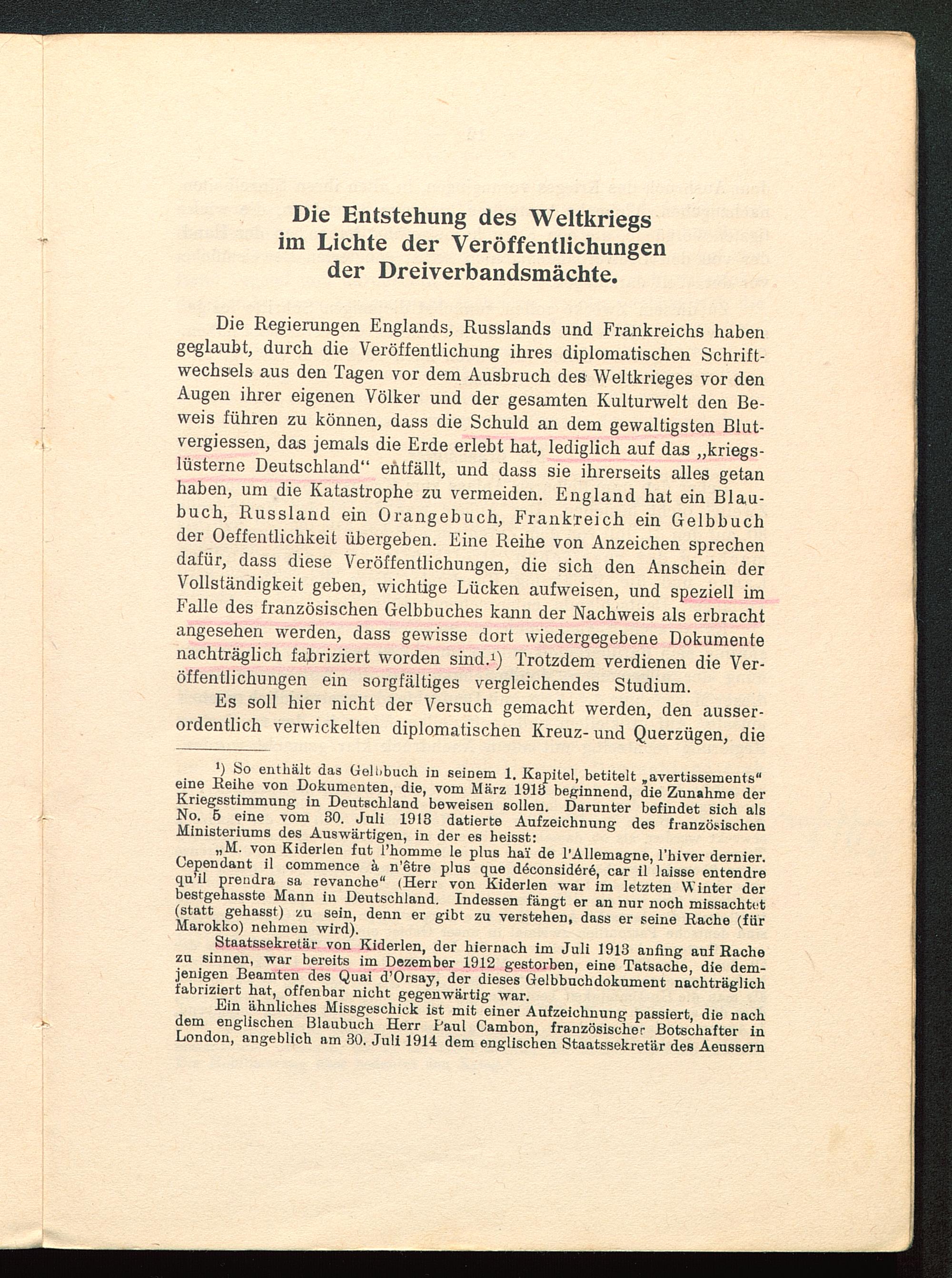 I. Die Entstehung des Weltkriegs im Lichte der Veröffentlichungen der Dreiverbandsmächte