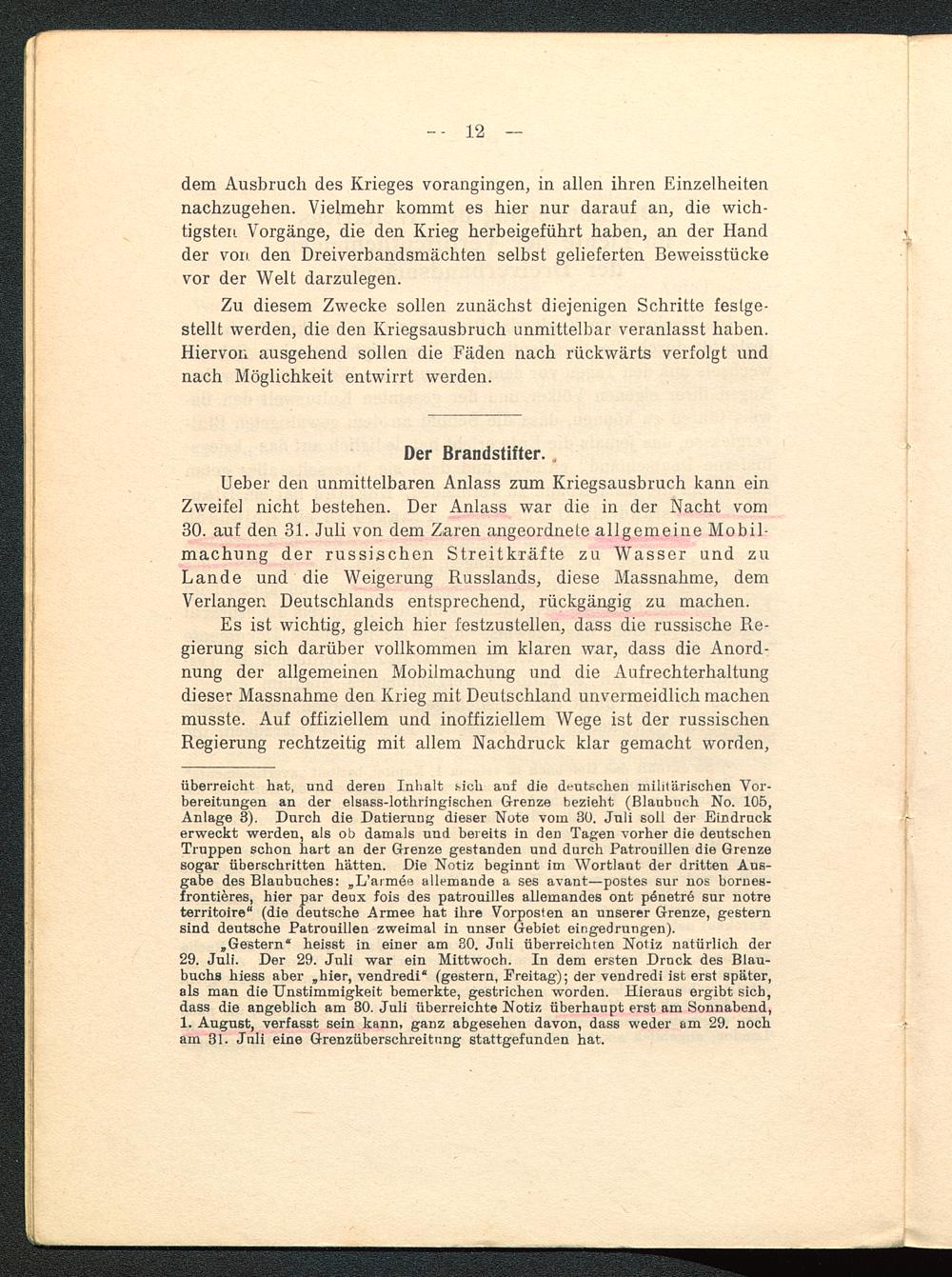 I. Die Entstehung des Weltkriegs im Lichte der Veröffentlichungen der Dreiverbandsmächte