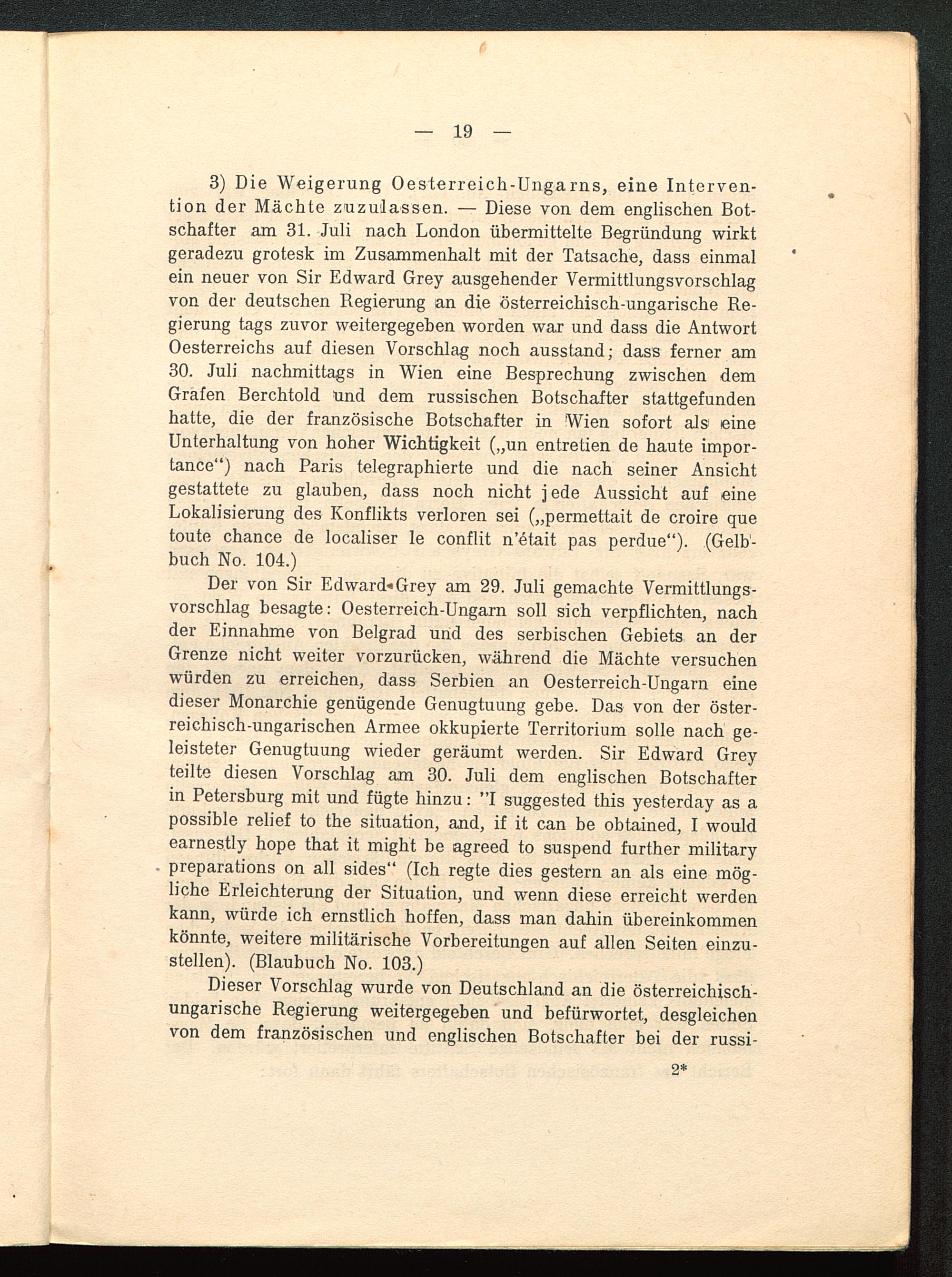 I. Die Entstehung des Weltkriegs im Lichte der Veröffentlichungen der Dreiverbandsmächte