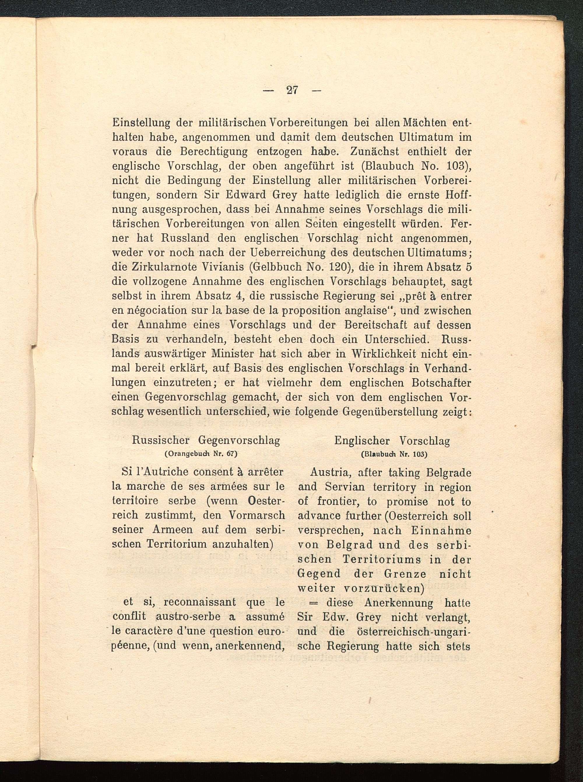 I. Die Entstehung des Weltkriegs im Lichte der Veröffentlichungen der Dreiverbandsmächte