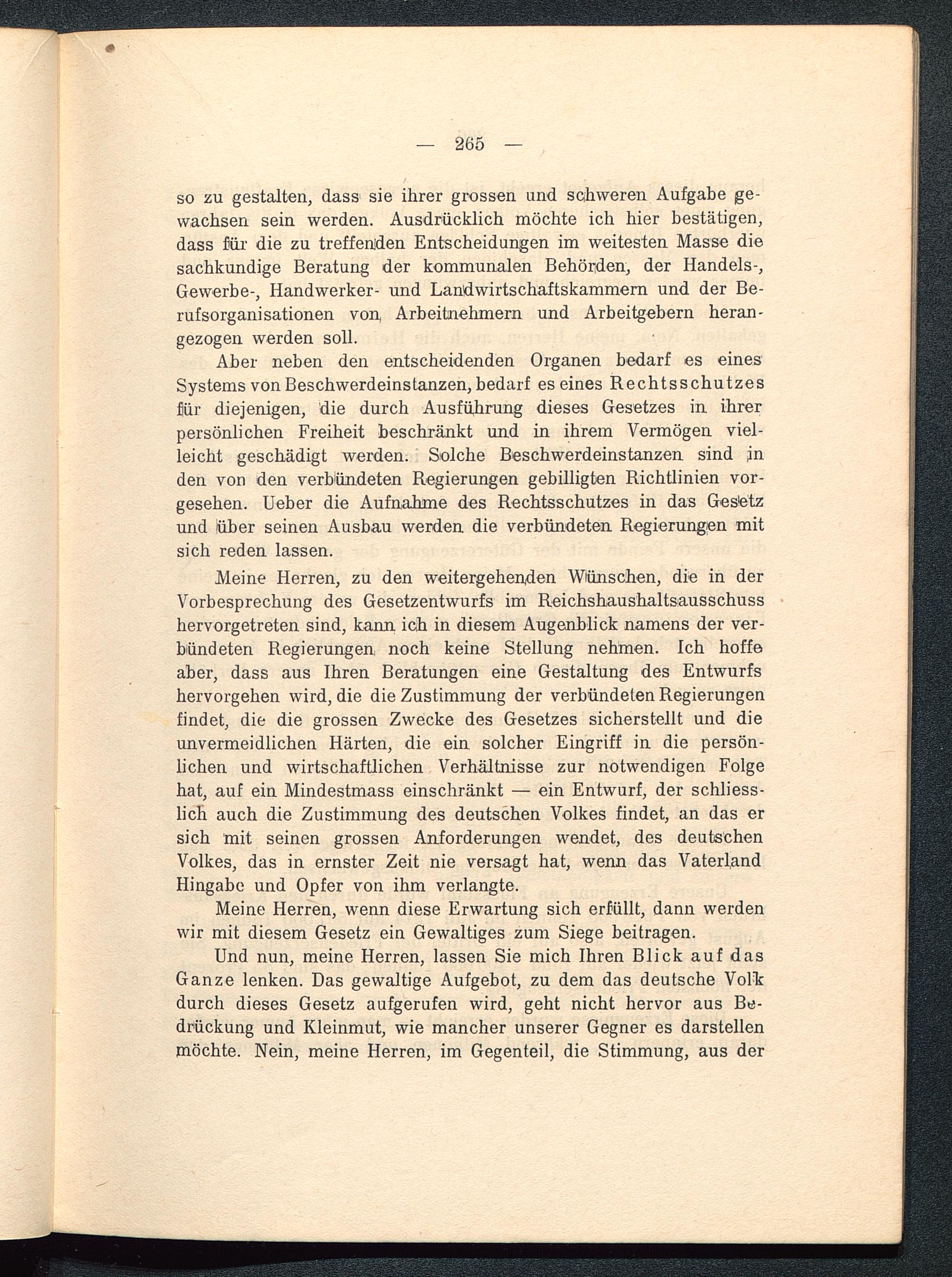 Übergangswirtschaft. Rede im Reichstagsausschuss für Handel und Gewerbe. Oktober 1916