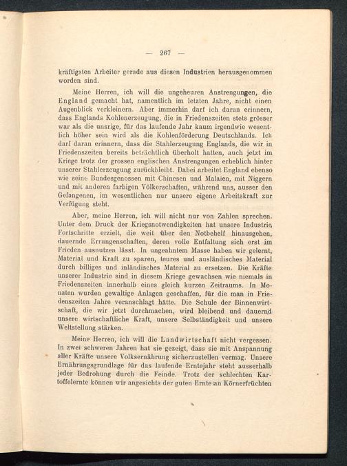 Übergangswirtschaft. Rede im Reichstagsausschuss für Handel und Gewerbe. Oktober 1916