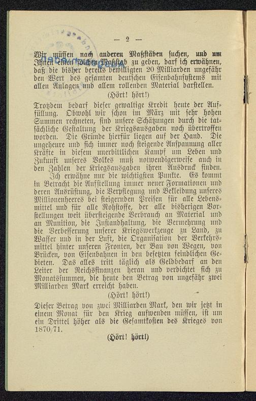 Dritte Kriegsanleihe ; Dr. [Karl] Helfferich, Staatssekr. d. Reichsschatzamts, über Deutschlands Finanzen. <Reichstagsrede v. 28.8.1915>