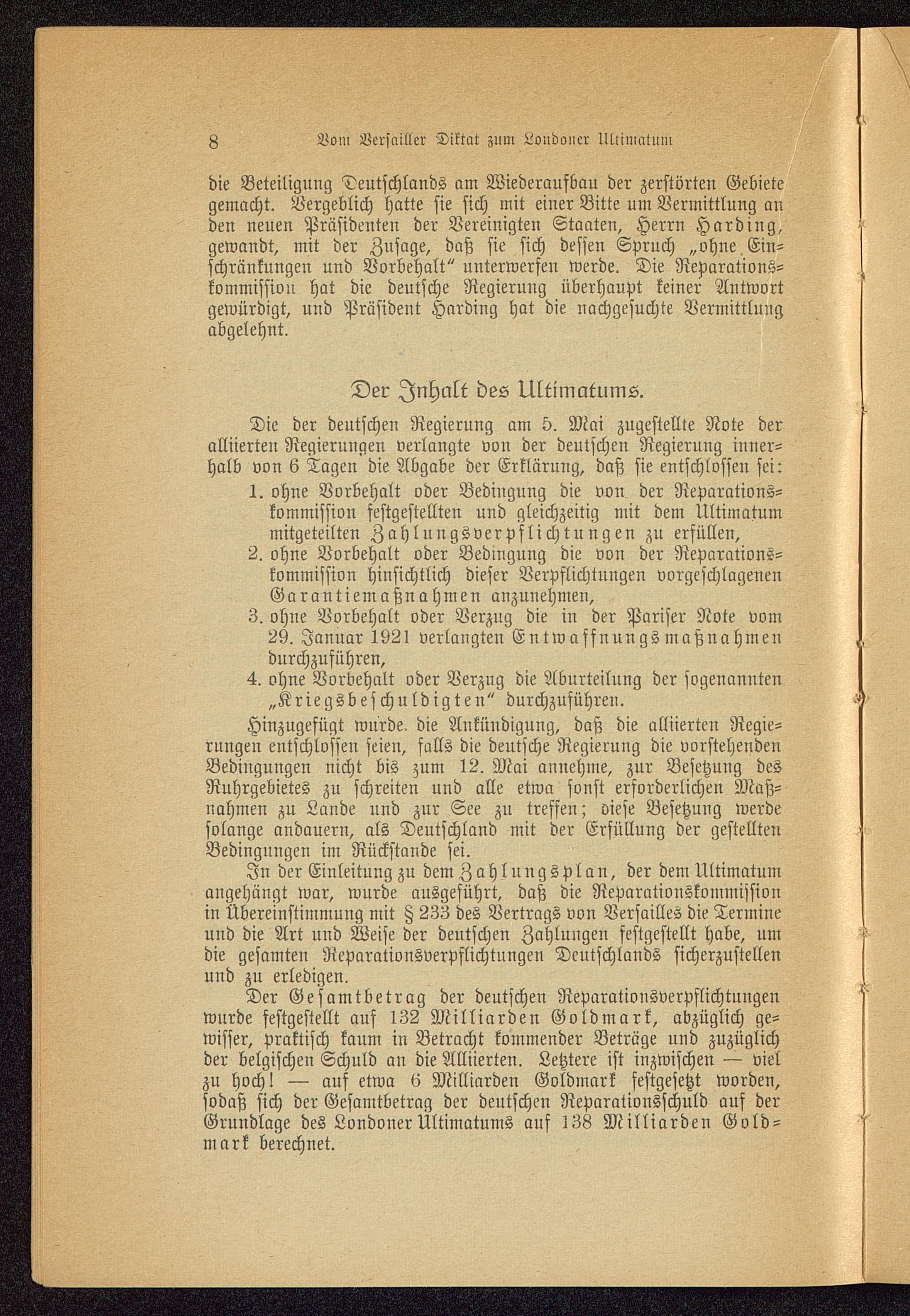 Ultimatum und Kriegsschäden.