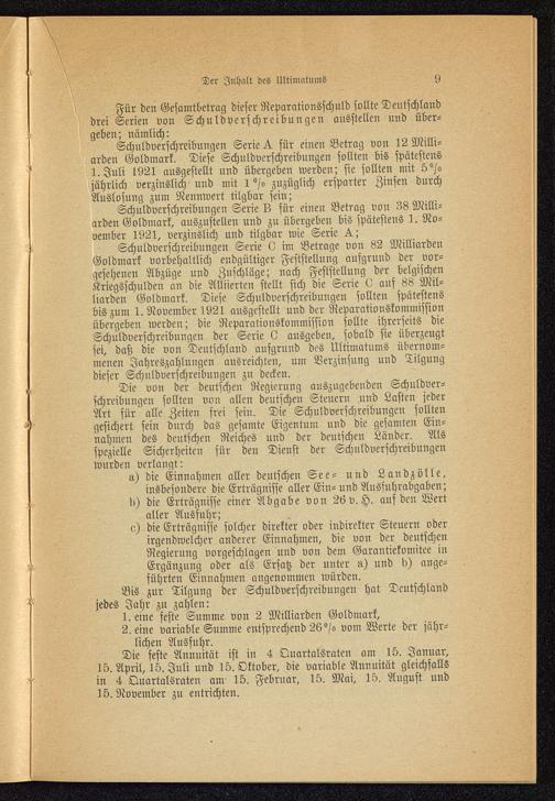 Ultimatum und Kriegsschäden.