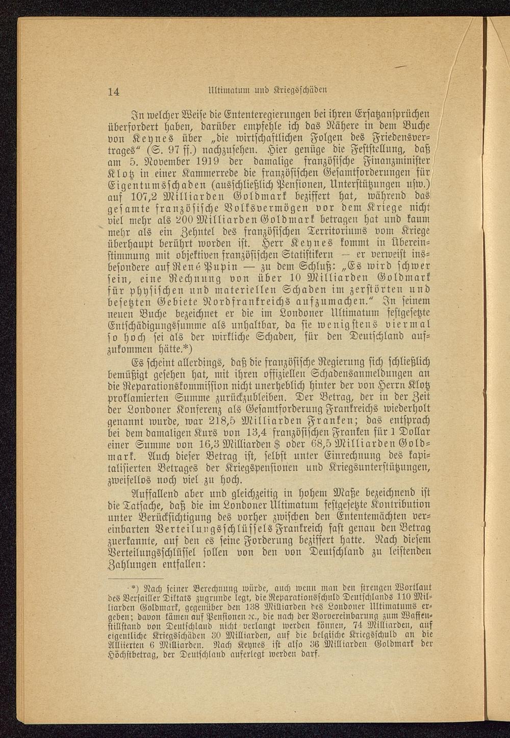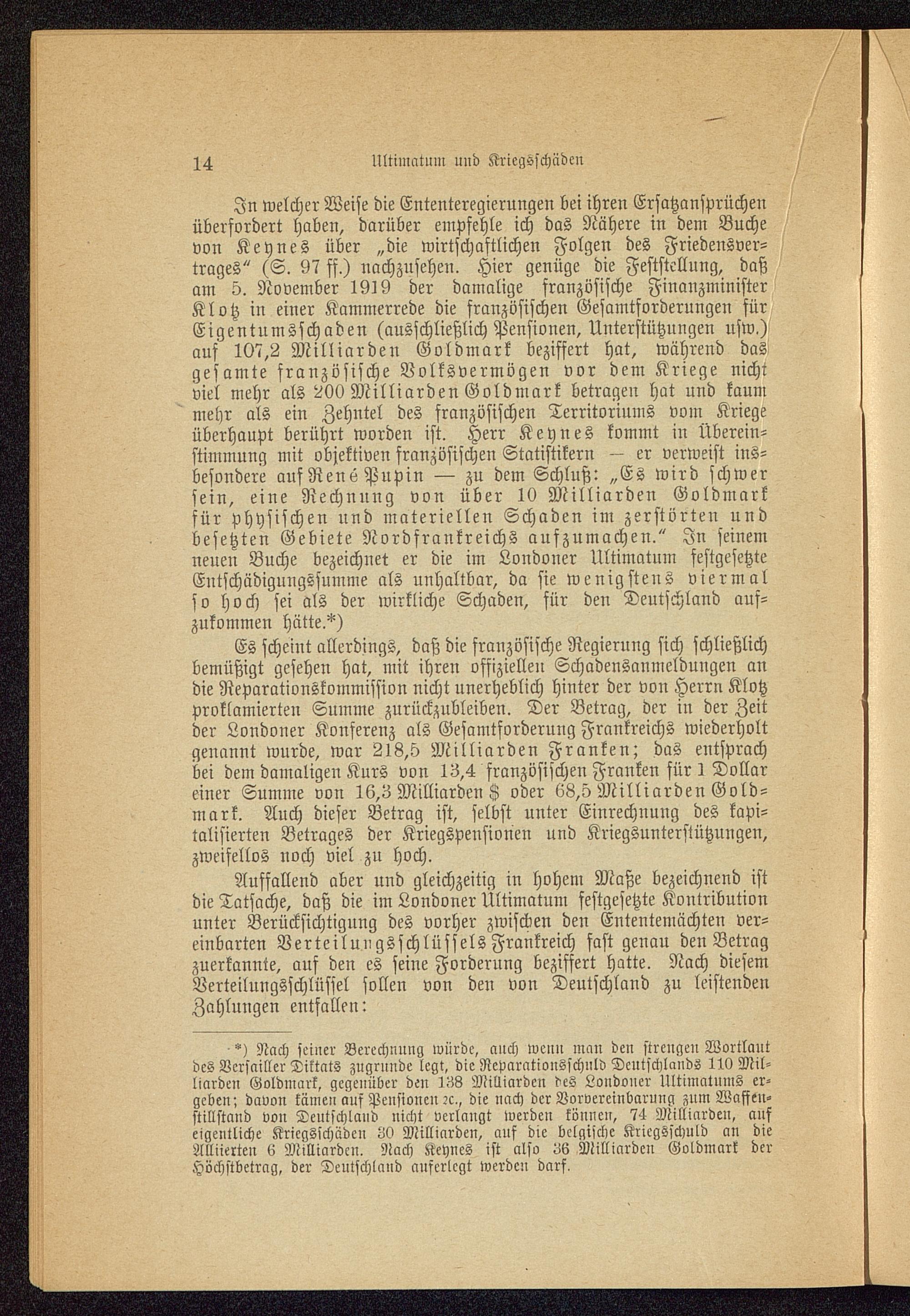 Ultimatum und Kriegsschäden.