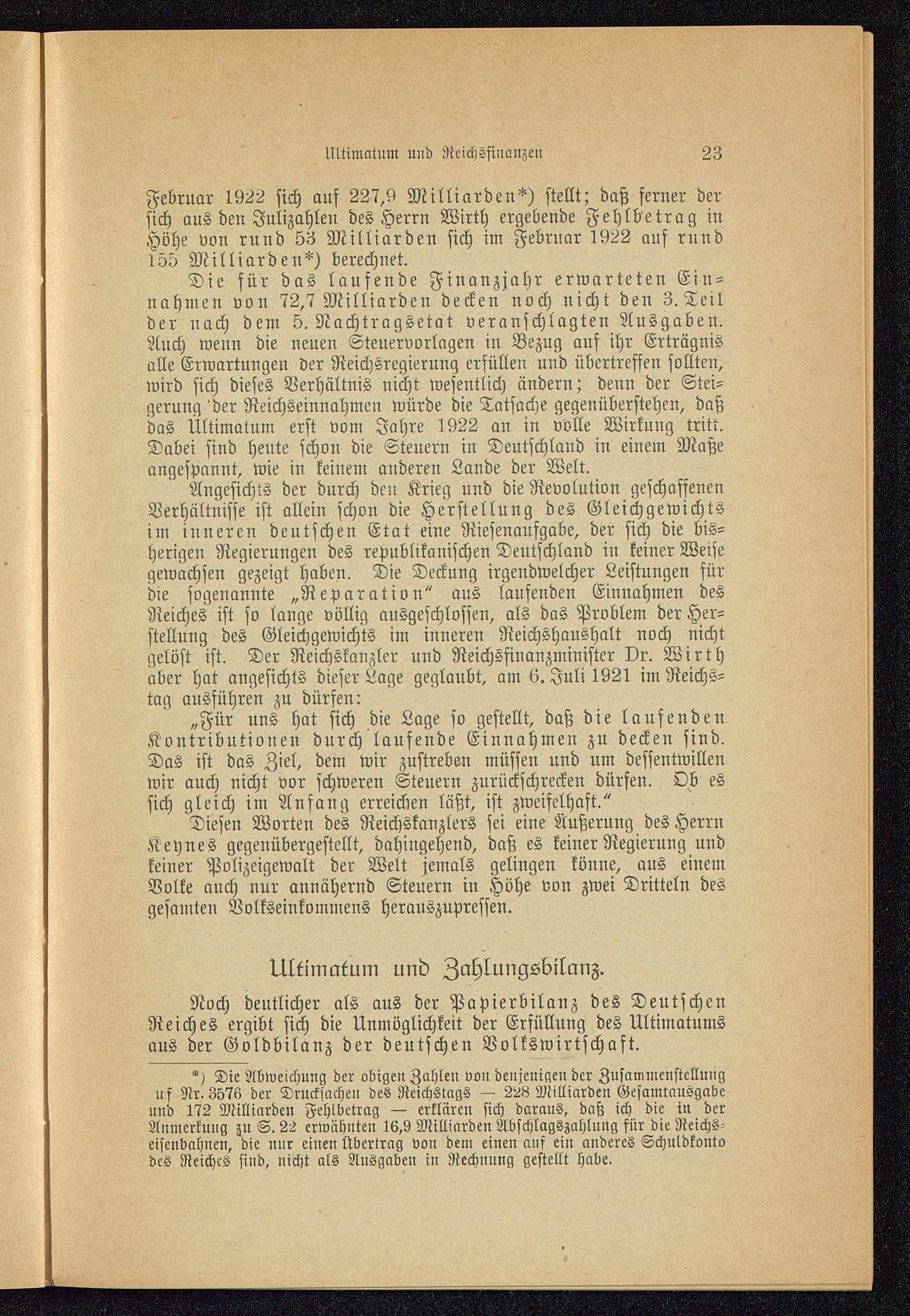 Ultimatum und Reichsfinanzen.