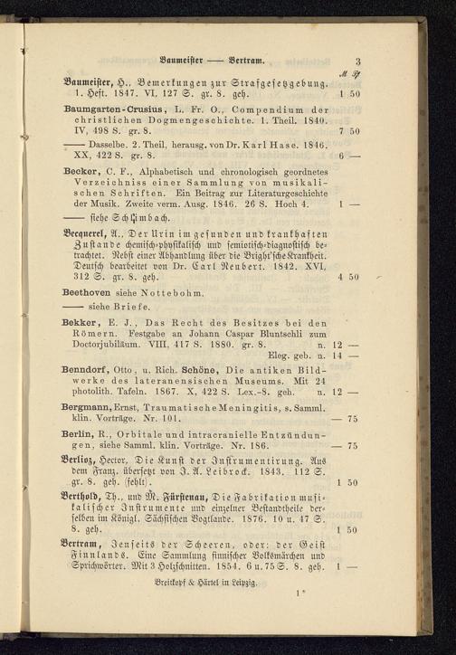 Verzeichniß des Bücher-Verlages von Breitkopf & Härtel in Leipzig, 1828 - 1880