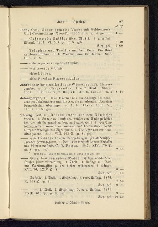Verzeichniß des Bücher-Verlages von Breitkopf & Härtel in Leipzig, 1828 - 1880