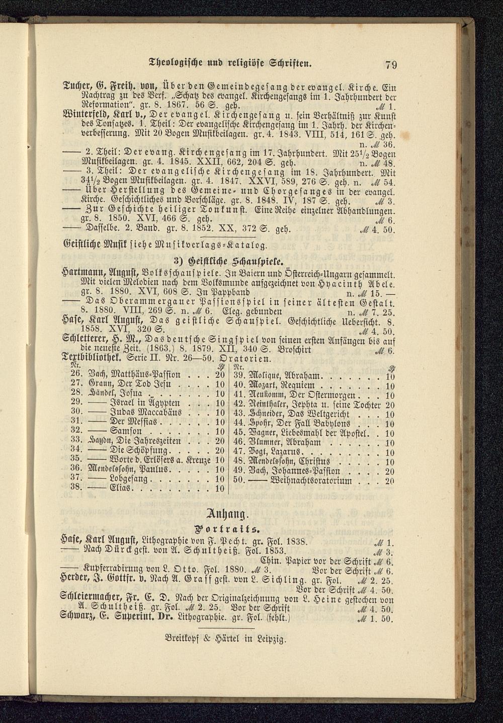 Verzeichniß des Bücher-Verlages von Breitkopf & Härtel in Leipzig, 1828 - 1880