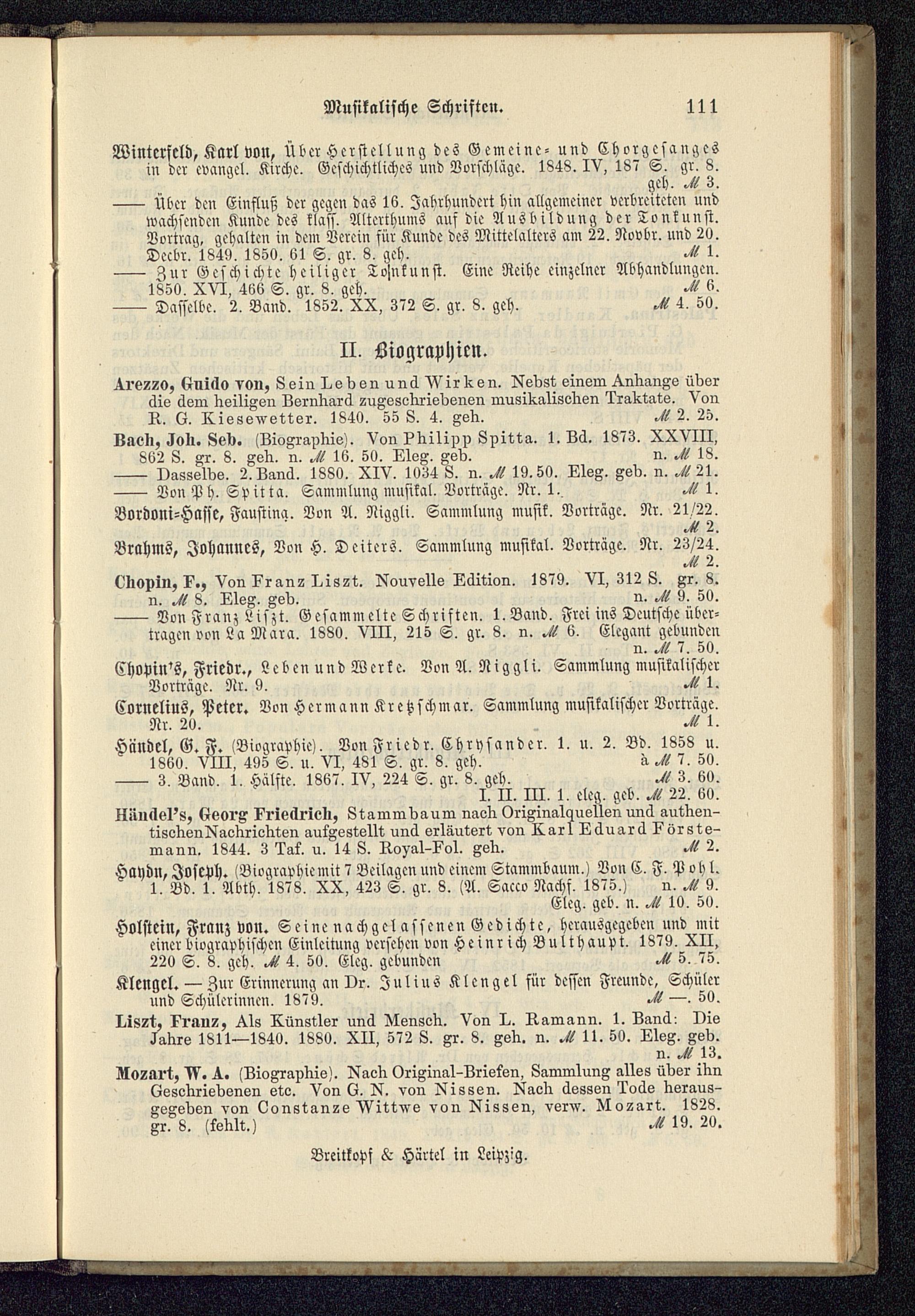 Verzeichniß des Bücher-Verlages von Breitkopf & Härtel in Leipzig, 1828 - 1880