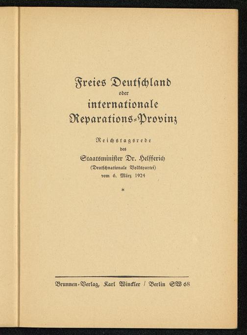 Freies Deutschland oder internationale Reparations-Provinz : Reichstagsrede / Karl Helfferich