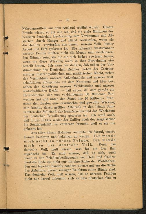 Die Friedensbedingungen : ein Wort an das deutsche Volk / von Karl Helfferich