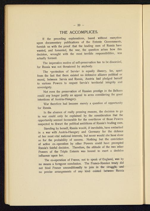 The genesis of the great war in the light of official documents published by the governments of the Triple Entente