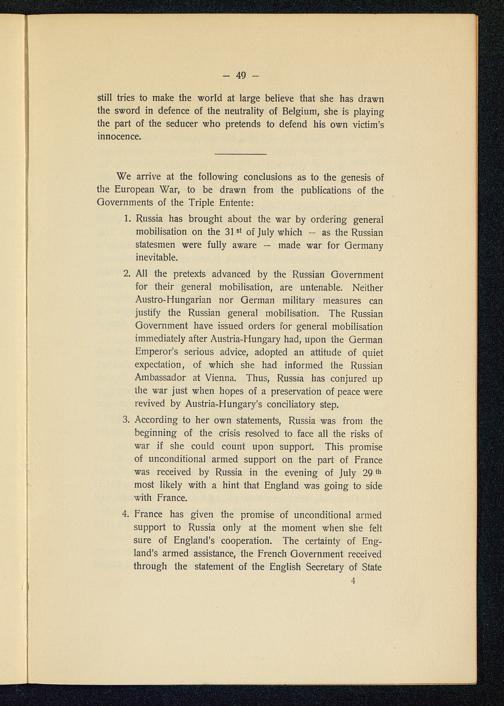The genesis of the great war in the light of official documents published by the governments of the Triple Entente