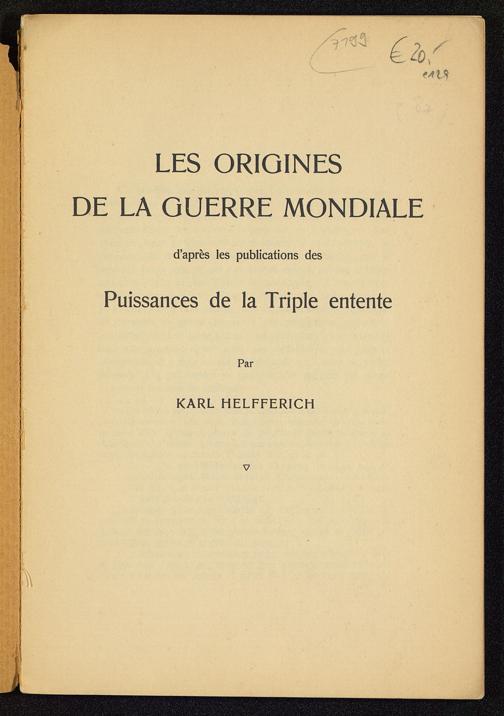 Les Origines de la guerre mondiale d'après les publications des puissances de la Triple entente / par Karl Helfferich