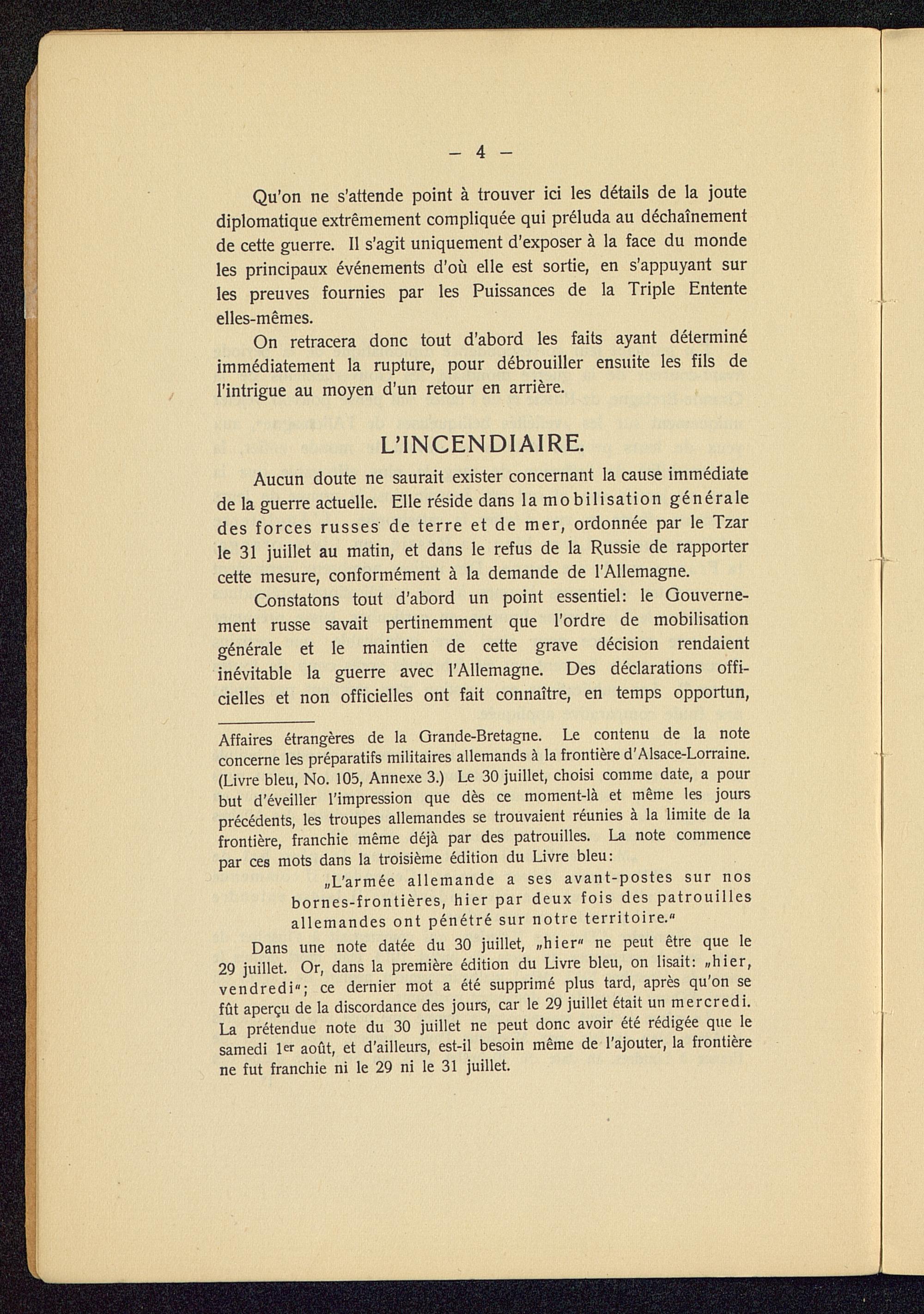 Les Origines de la guerre mondiale d'après les publications des puissances de la Triple entente