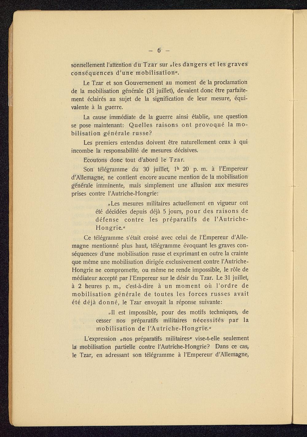 1. La mobilisation générale russe était-elle une réponse aux mesures militaires de l'Autriche-Hongrie?