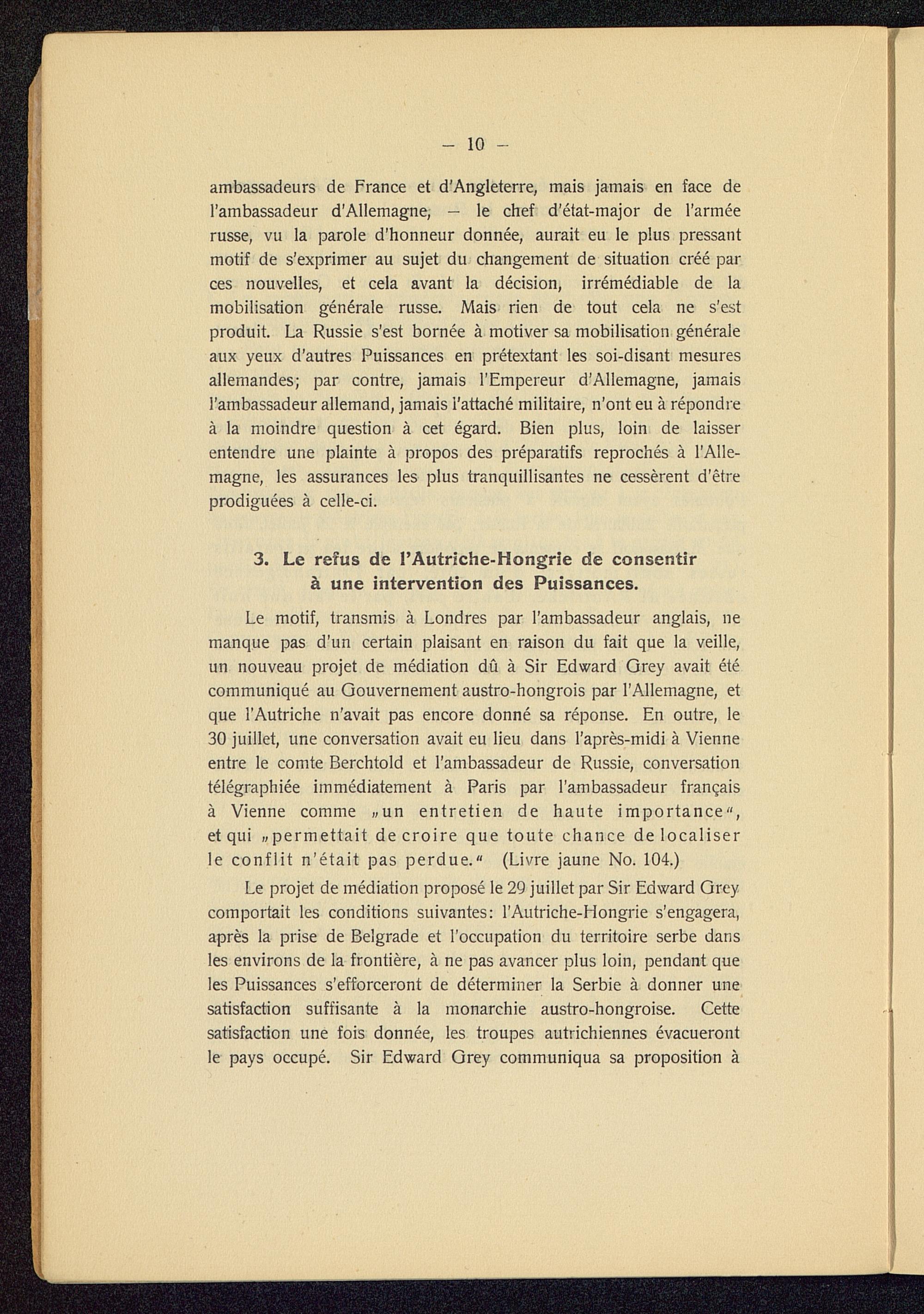 3. Le refus de l'Autriche-Hongrie de consentir à une intervention des Puissances