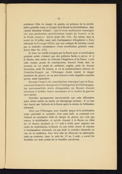 Les Origines de la guerre mondiale d'après les publications des puissances de la Triple entente