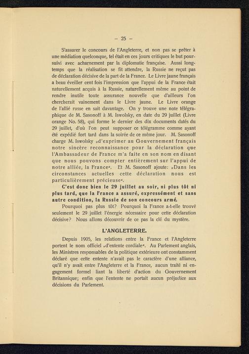 Les Origines de la guerre mondiale d'après les publications des puissances de la Triple entente