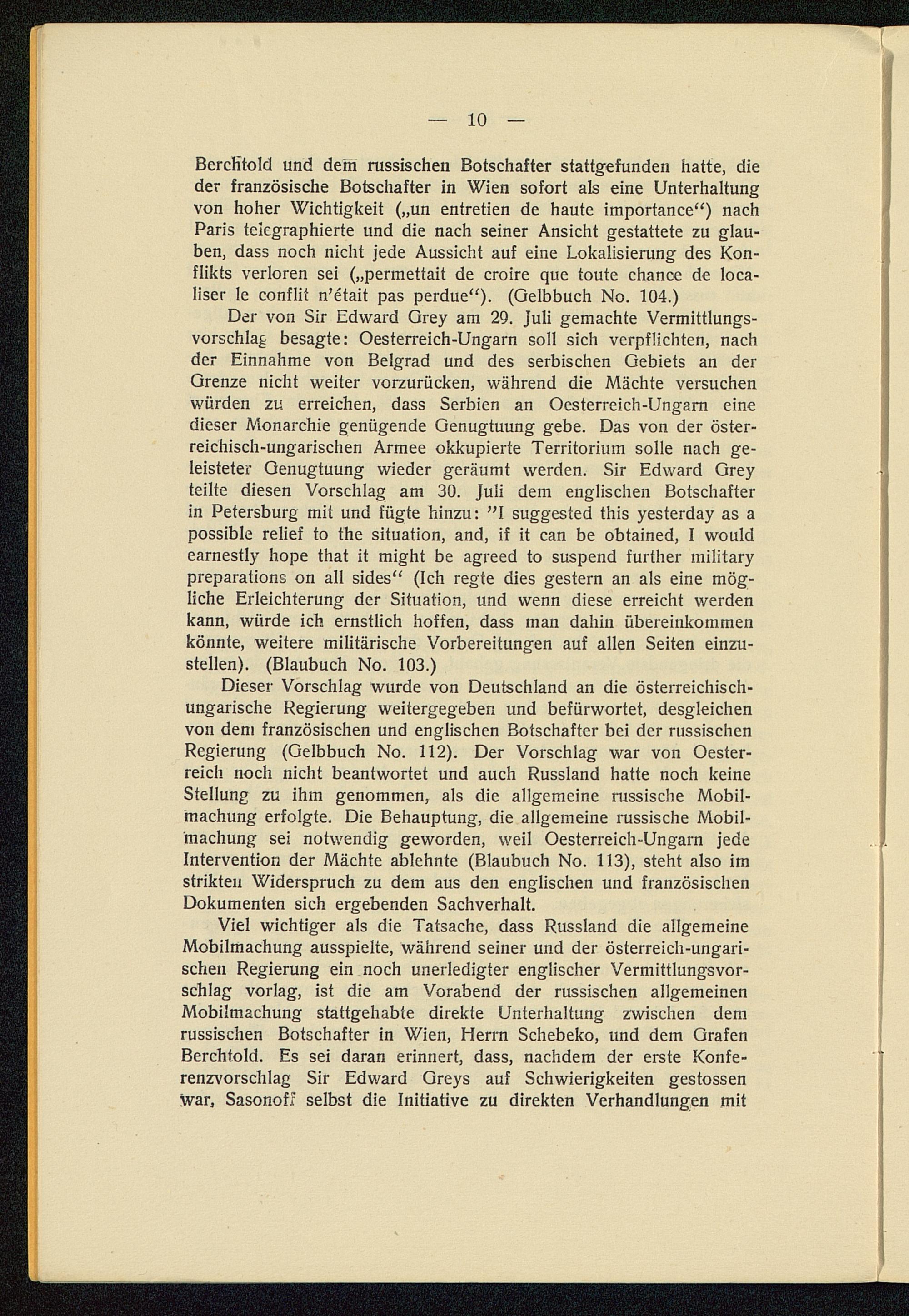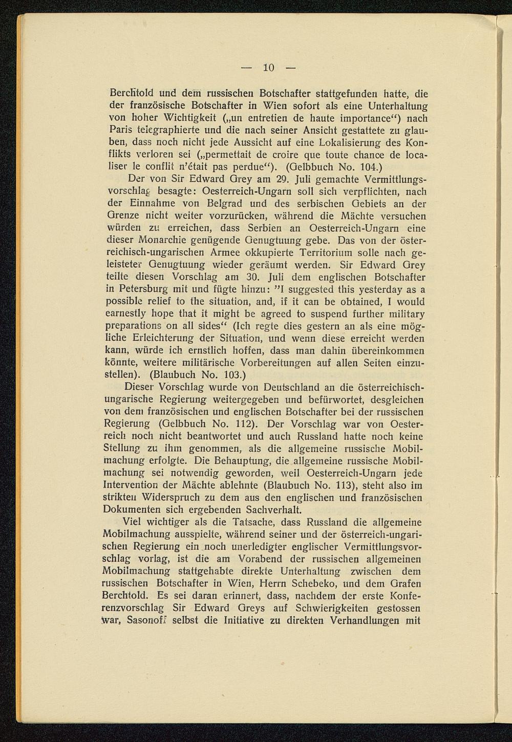 Die Entstehung des Weltkrieges im Lichte der Veröffentlichungen der Dreiverbandmächte