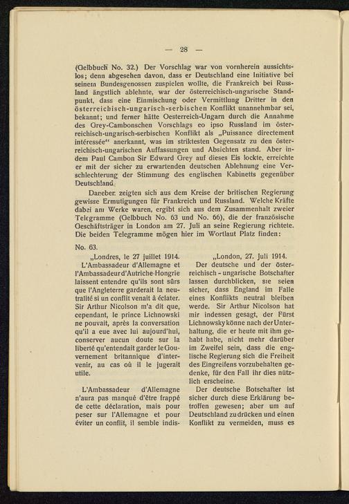 Die Entstehung des Weltkrieges im Lichte der Veröffentlichungen der Dreiverbandmächte