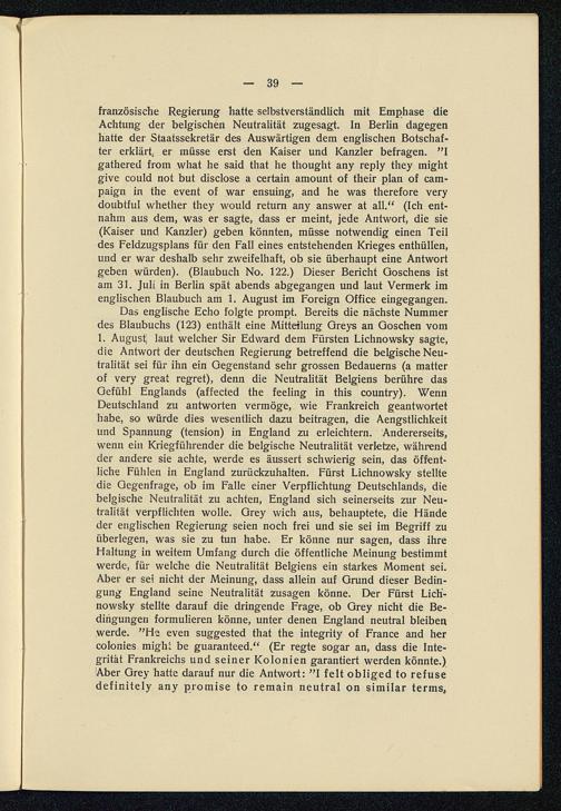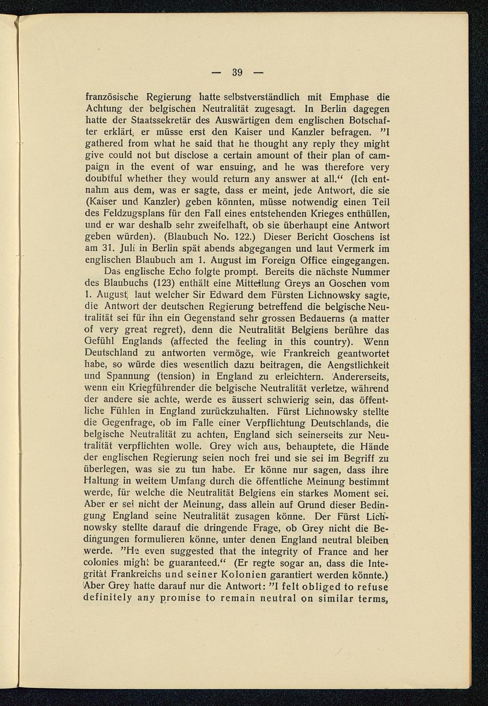Die Entstehung des Weltkrieges im Lichte der Veröffentlichungen der Dreiverbandmächte