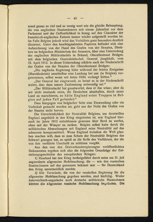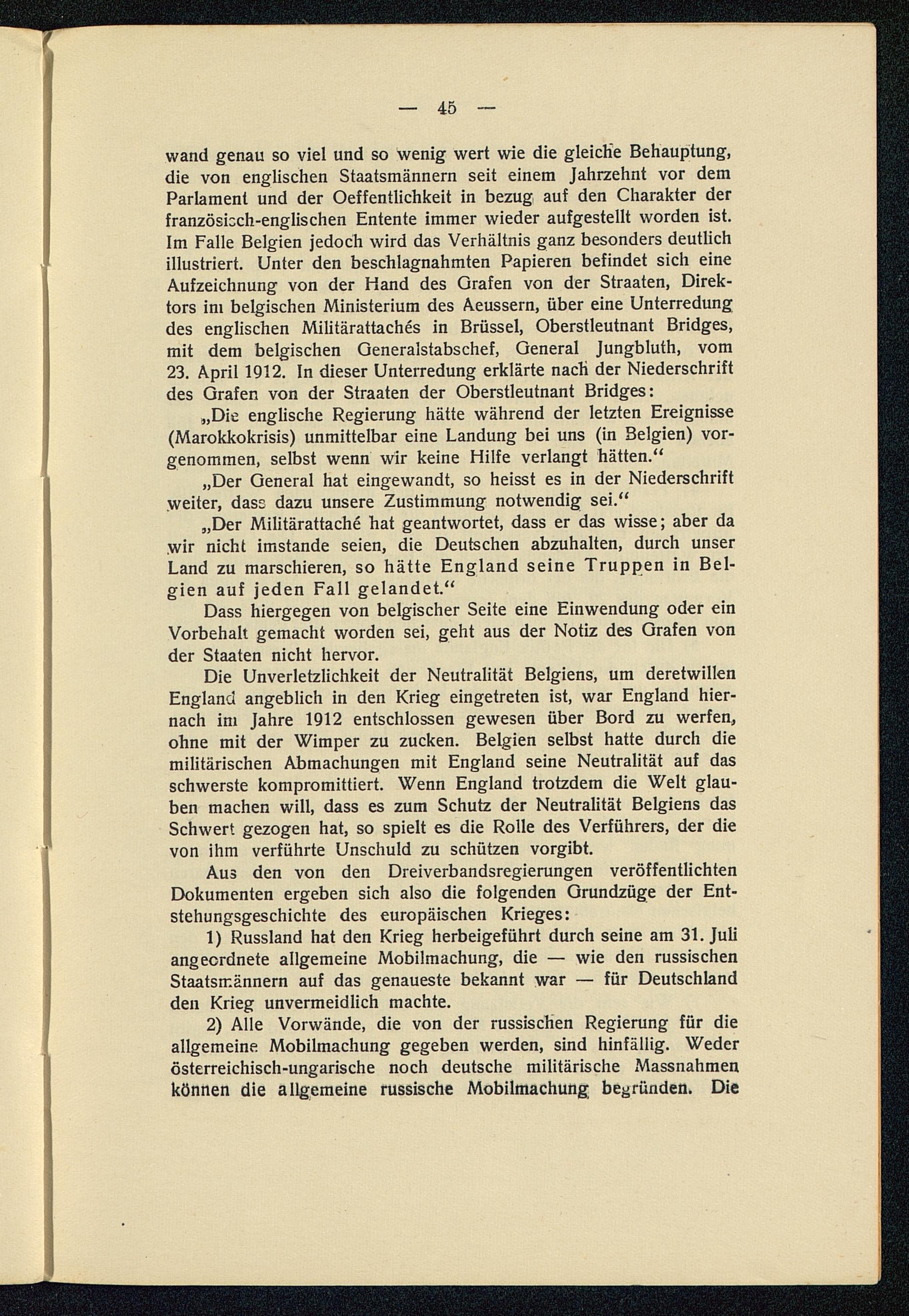 Die Entstehung des Weltkrieges im Lichte der Veröffentlichungen der Dreiverbandmächte