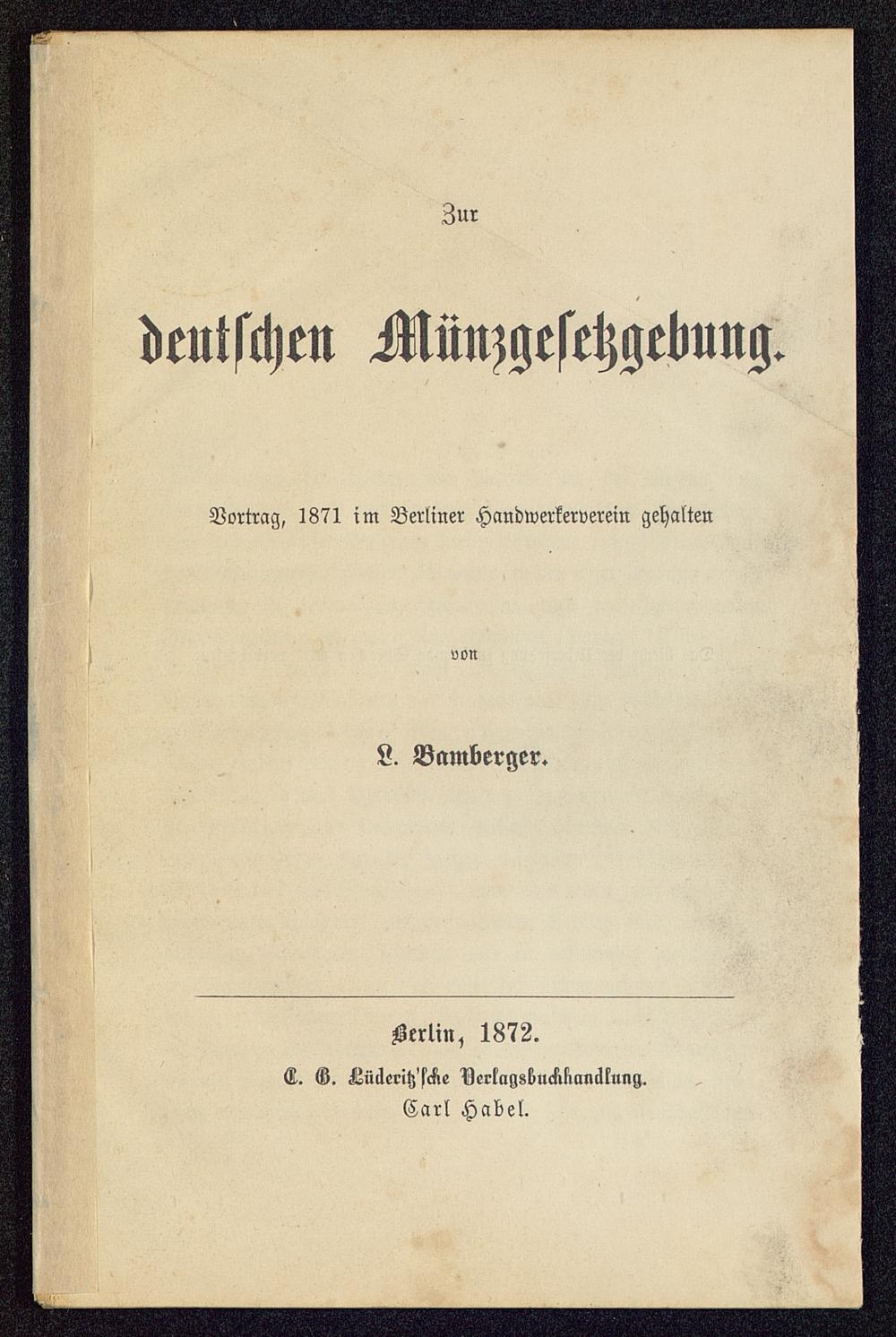 Zur deutschen Münzgesetzgebung : Vortrag, 1871 im Berliner Handwerkerverein gehalten / von L. Bamberger