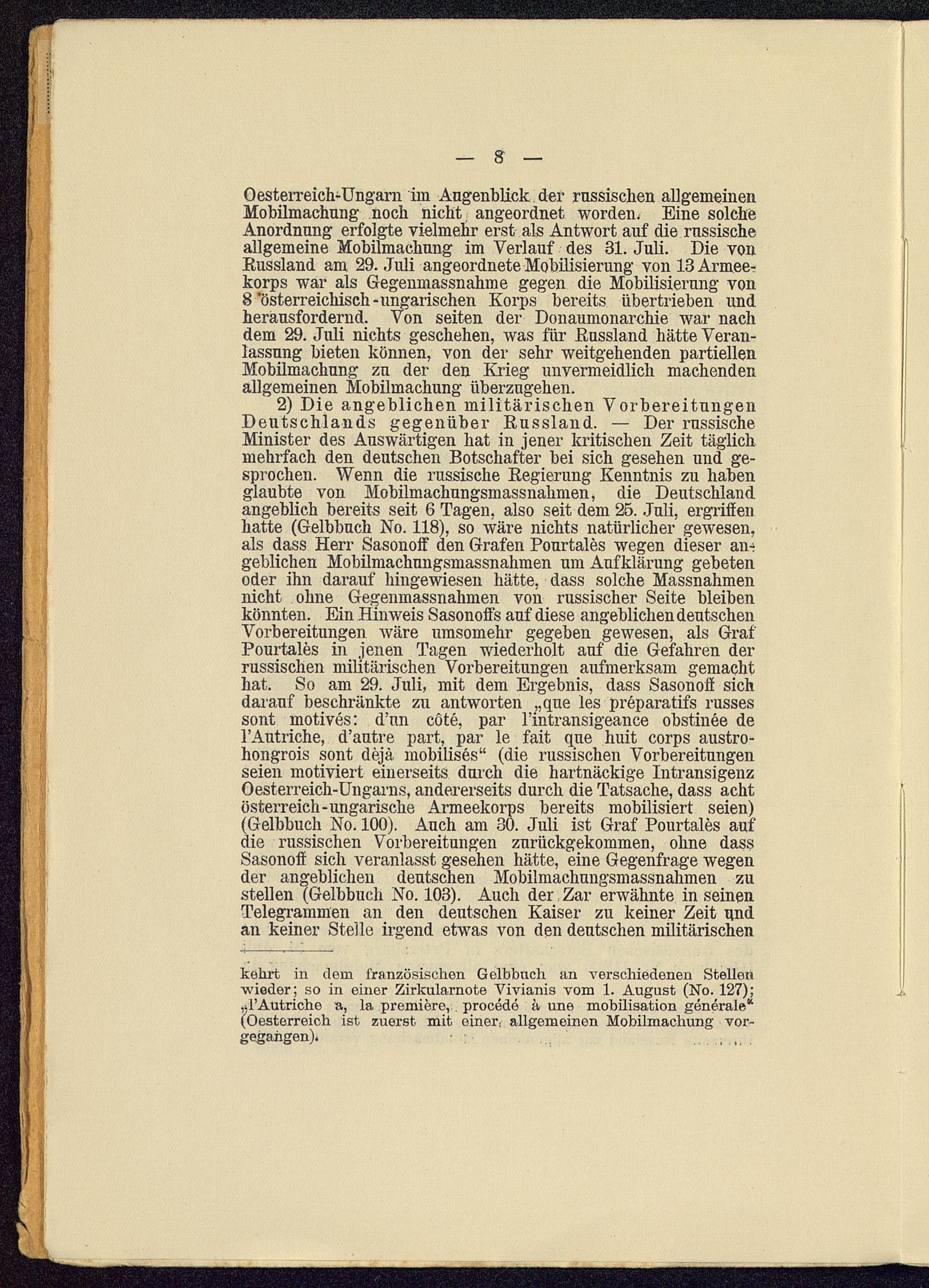 1) Die allgemeine russische Mobilmachung als Antwort auf die militärischen Massnahmen Oesterreich-Ungarns.