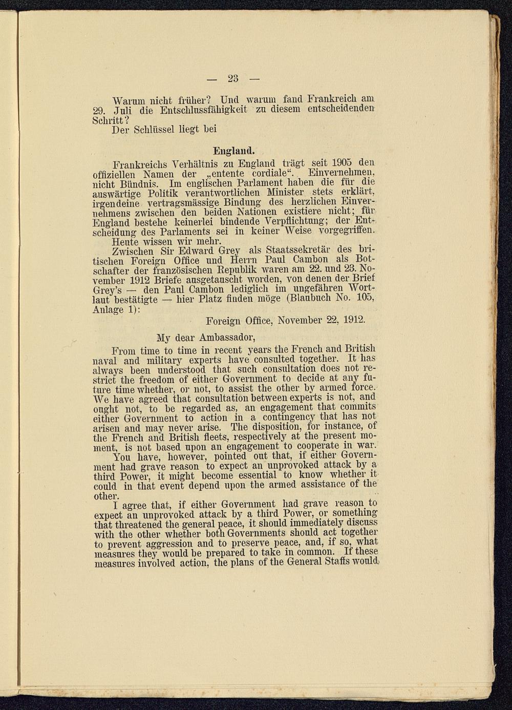 Die Entstehung des Weltkrieges im Lichte der Veröffentlichungen der Dreiverbandmächte