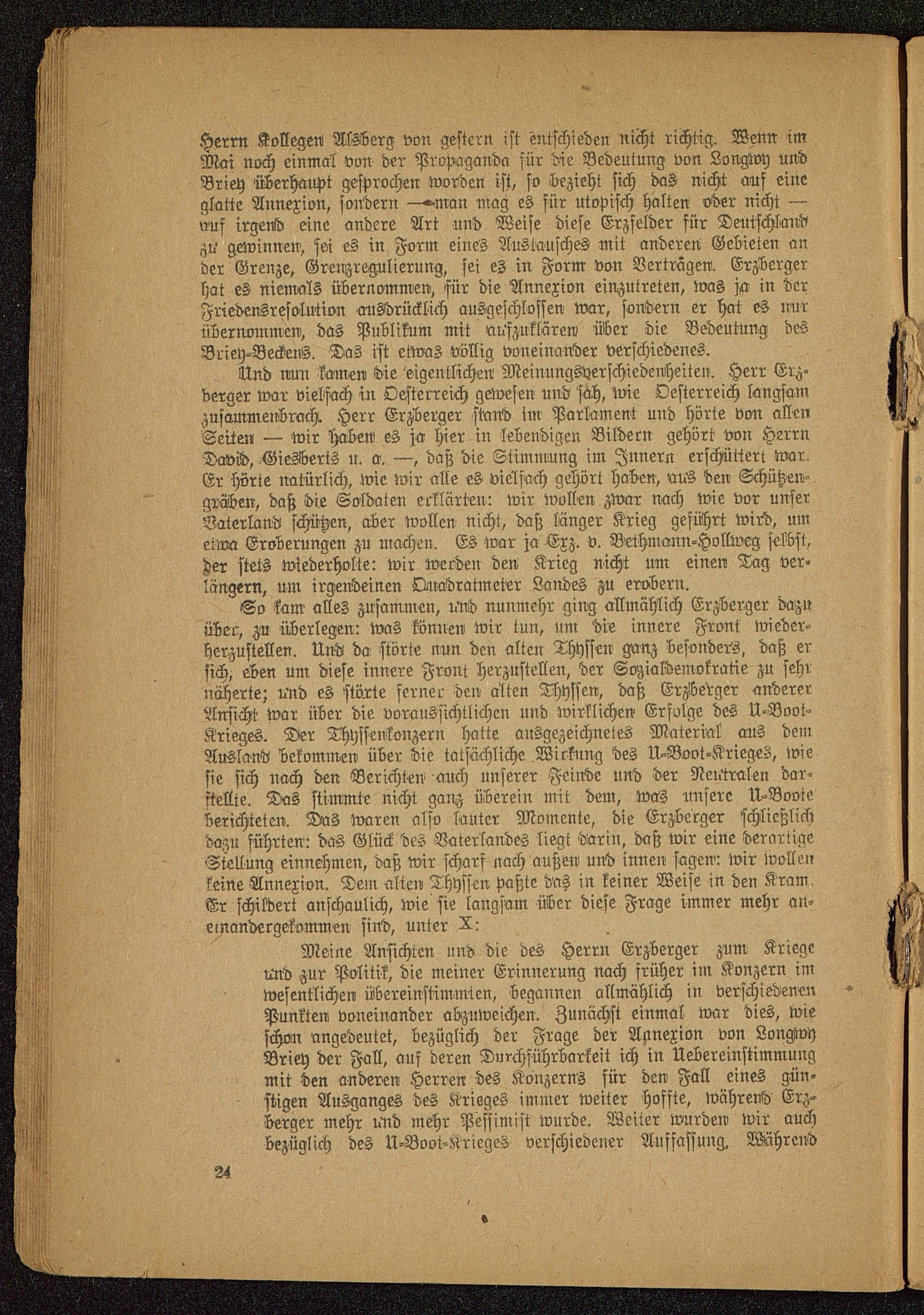Für Erzberger. Aus der Rede des Geheimen Justizrates Dr. v. Gordon (5. III.)