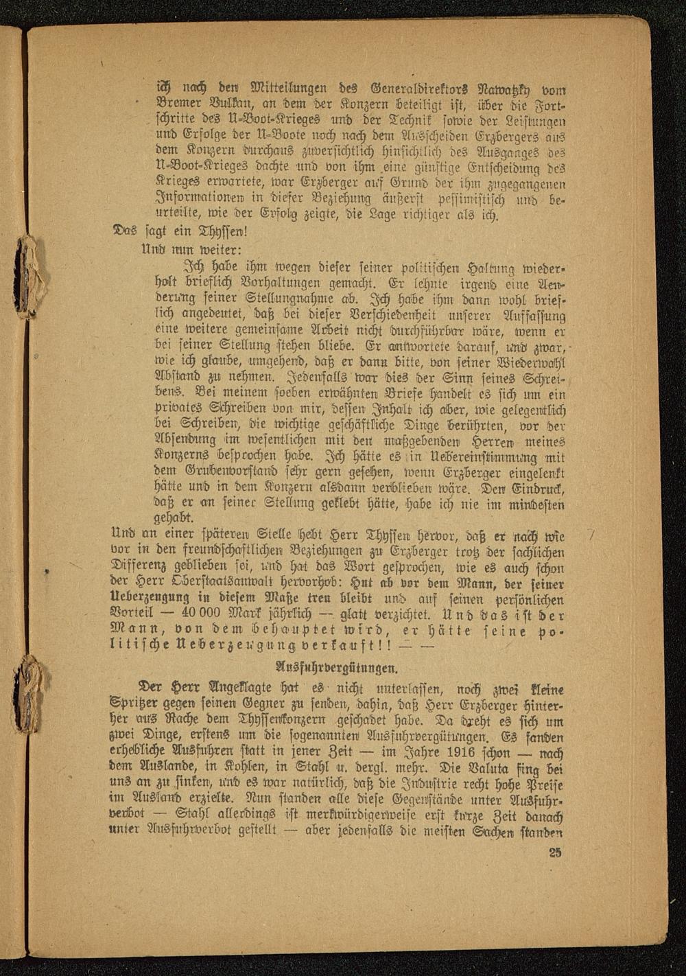 Für Erzberger. Aus der Rede des Geheimen Justizrates Dr. v. Gordon (5. III.)