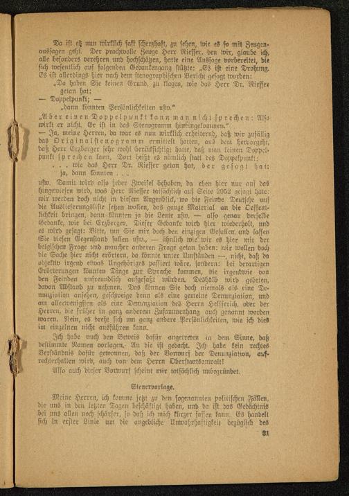 Für Erzberger. Aus der Rede des Geheimen Justizrates Dr. v. Gordon (5. III.)