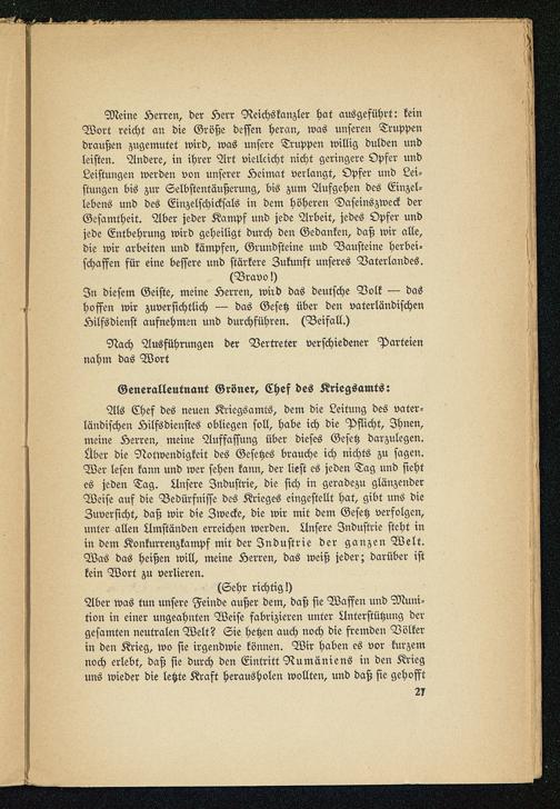 Vaterländischer Hilfsdienst : Reden zur Vorlage des Gesetzes im Reichstag (29. November 1916) / von Bethmann Hollweg; von Stein; Helfferich; Gröner